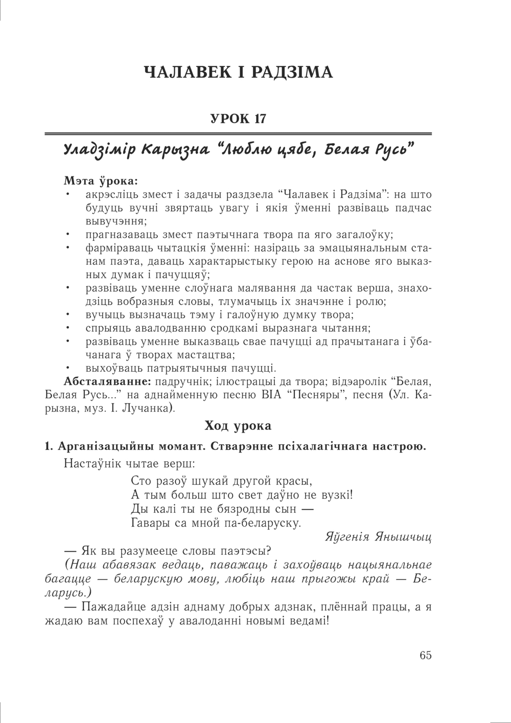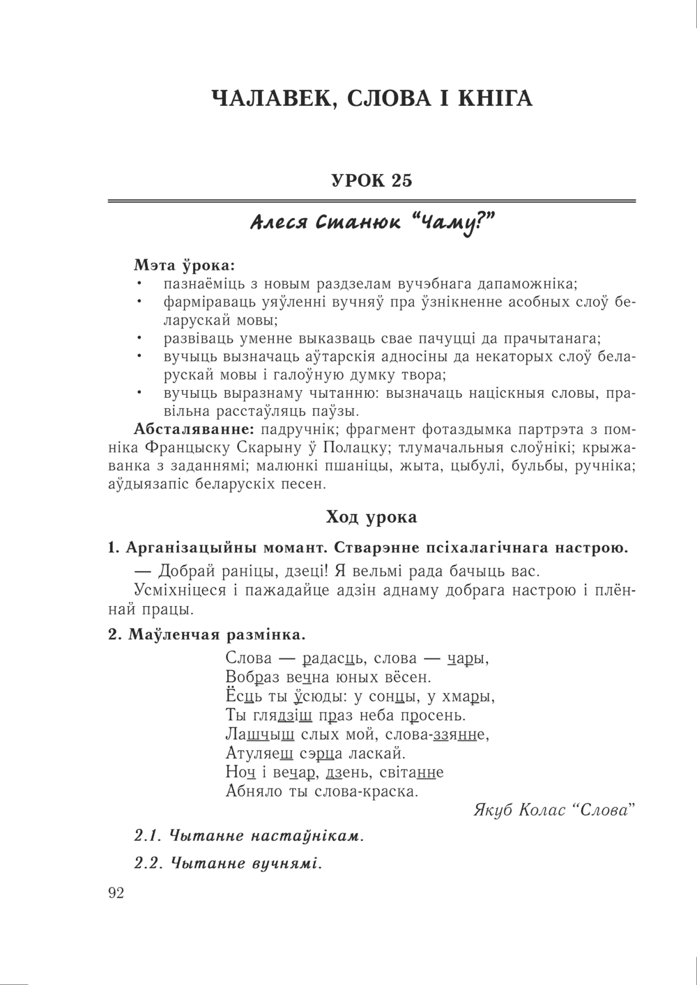 Змест прапанаваных урокаў накіраваны на выпрацоўку ў вучняў выразнага хуткага чытання, развіццё мовы, узбагачэнне слоўнікавага запасу, прывіццё любові да роднай мовы.