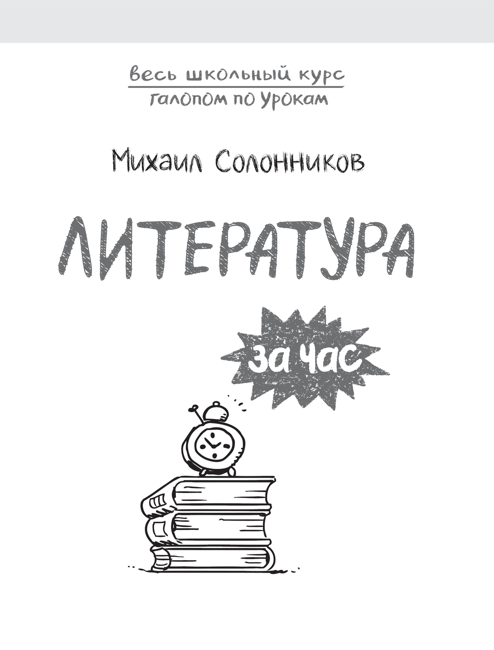 Это пособие станет незаменимым помощником для школьников 5-11 классов. В нём систематизирован школьный курс по литературе: историко-литературный процесс, разборы великих произведений, краткая информация о писателях и поэтах. Тщательно выверенная и представленная в виде инфографики информация позволит сэкономить время на поиск ответов в Интернете или в разных учебниках, активизирует ресурсы памяти, поможет быстро подготовиться к контрольной или экзаменам. Михаил Солонников – педагог по русскому языку и литературе, эксперт ЕГЭ и ОГЭ, победитель конкурса "Педагогические надежды", основатель и ведущий блога "Литература в школе".