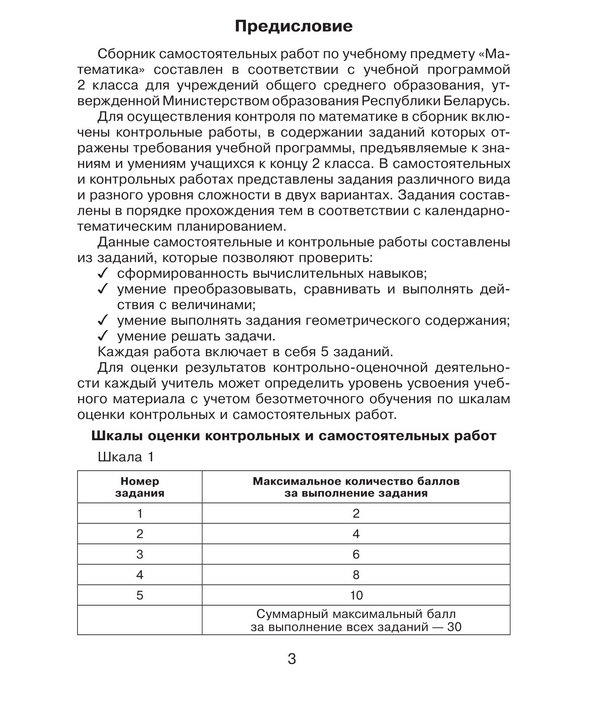 В самостоятельных и контрольных работах представлены задания различного вида и уровня сложности. Задания составлены в порядке прохождения тем в соответствии с календарно-тематическим планированием. Каждая работа включает в себя 5 заданий, направленных на проверку сформированности вычислительных навыков, умения решать задачи изученных видов, преобразования величин и умения выполнять задания геометрического содержания.