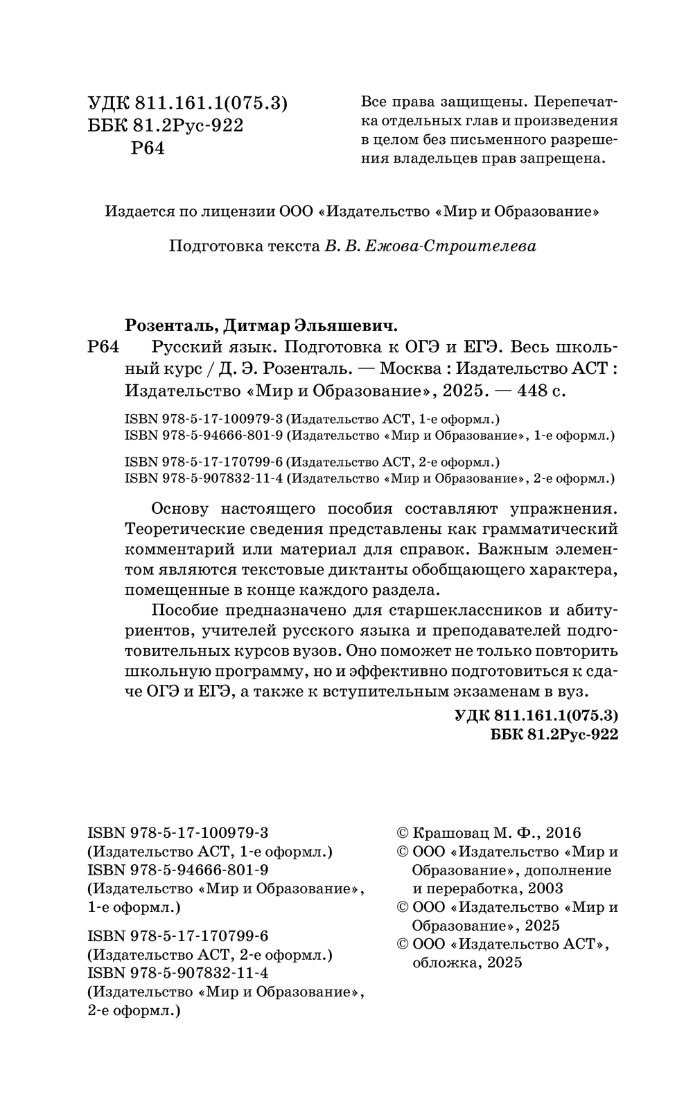 Пособие предназначено для старшеклассников и абитуриентов, учителей русского языка и преподавателей подготовительных курсов вузов. Оно поможет не только повторить школьную программу, но и эффективно подготовиться к сдаче ОГЭ и ЕГЭ, а также к вступительным экзаменам в вуз.