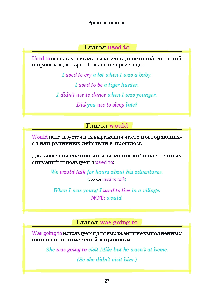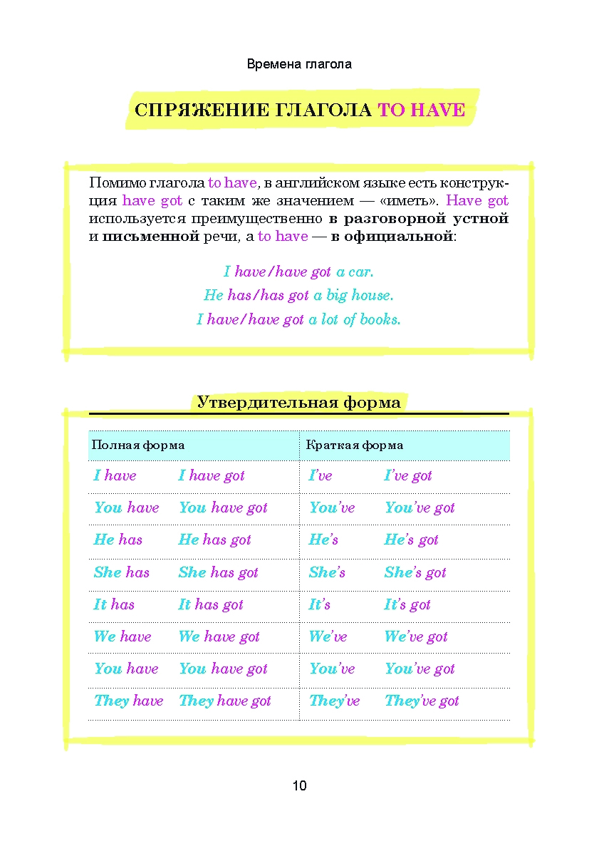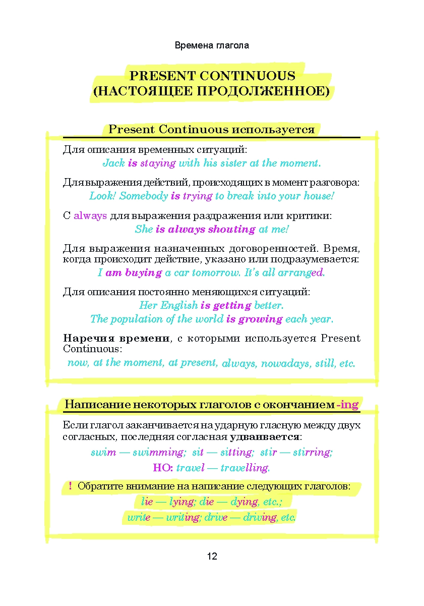 Учебный материал представлен в виде схем и таблиц по всем важнейшим разделам. Все правила проиллюстрированы примерами с переводом на русский язык.