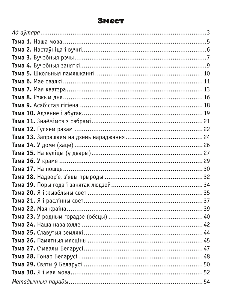 Дапаможнік уключае практычны матэрыял па ўсіх тэмах вучэбнай праграмы па беларускай мове для 1 класа. Прапанаваныя займальныя практыкаванні і гульні распрацаваны з мэтай стымулявання цікавасці першакласнікаў да вывучэння роднай мовы, павышэння маўленчай граматнасці.