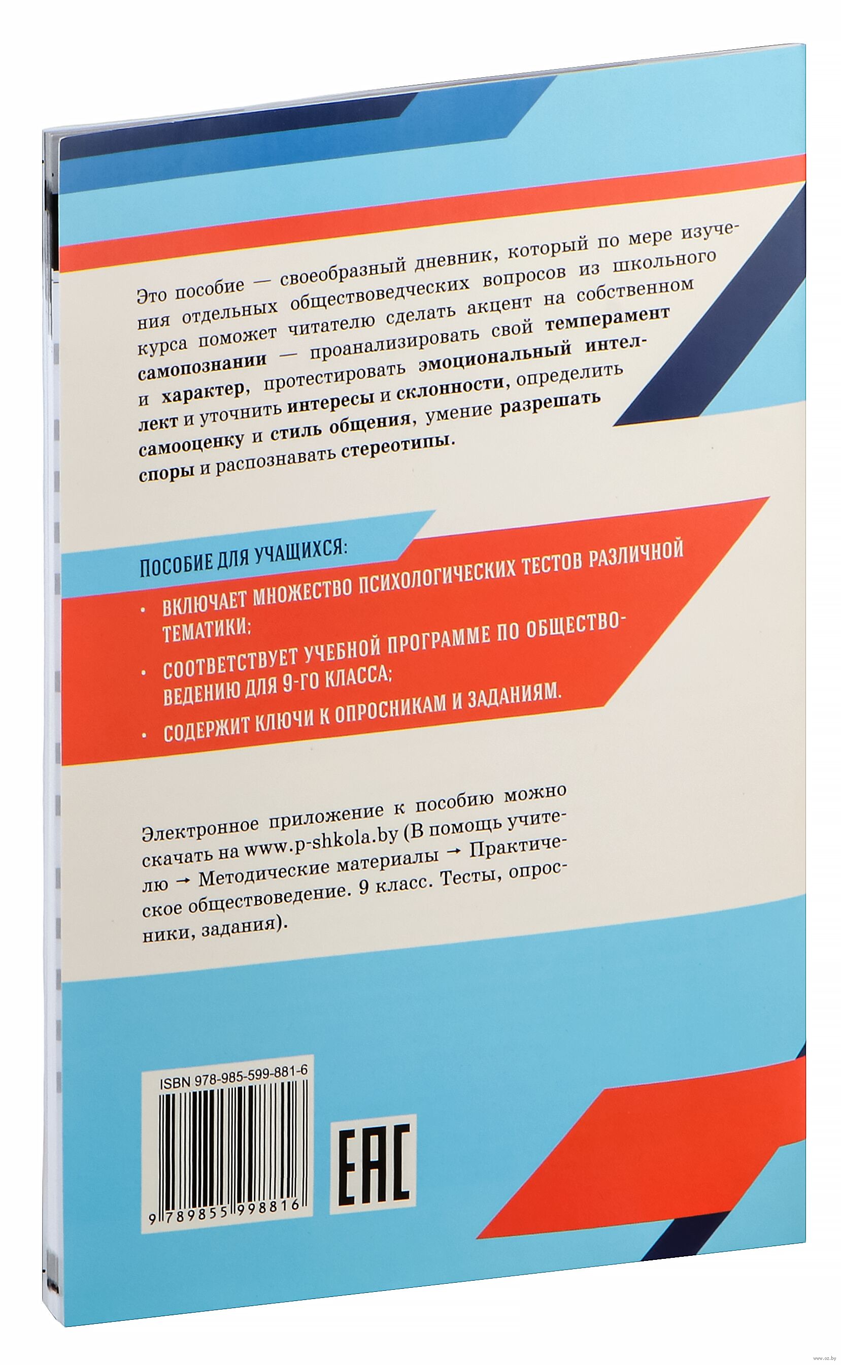 Подобранные в соответствии с учебной программой опросники и задания позволят прикоснуться к психологической реальности – задать себе важные вопросы о себе и других людях и задуматься над искренностью своих ответов на них, обозначить скрытые проблемы и подумать над их решением. Пособие адресуется девятиклассникам и их родителям, учителям обществоведения и истории.
