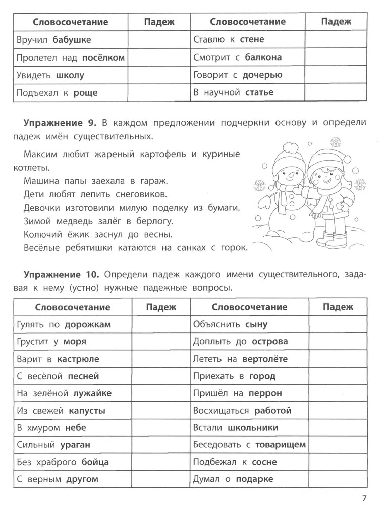 Выполняя задания из этого пособия, обучающиеся усвоят алгоритм и отработают навык определения падежа имён существительных в словосочетаниях и предложениях.