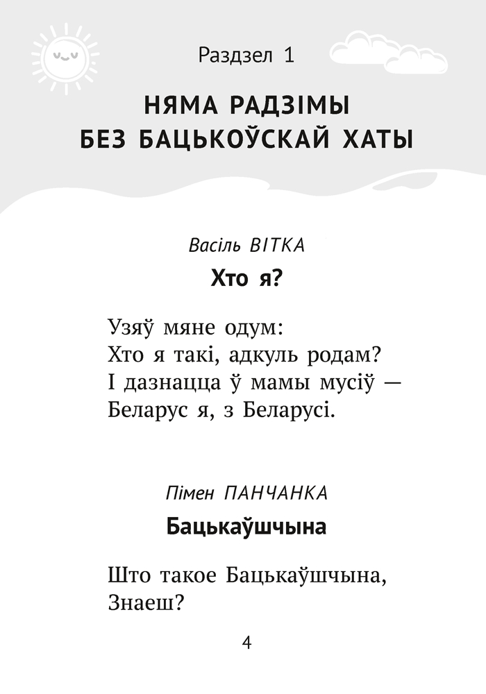 Хрэстаматыя ўключае найбольш каштоўныя і значныя творы для пазакласнага чытання, якія пакуль не ўваходзяць у спіс абавязковых для прачытання. Паэзія і проза сучасных беларускіх пісьменнікаў пазнаёмяць маленькіх чытачоў з прыгажосцю роднай мовы і дапамогуць адправіцца ў захапляльнае падарожжа па Беларусі.