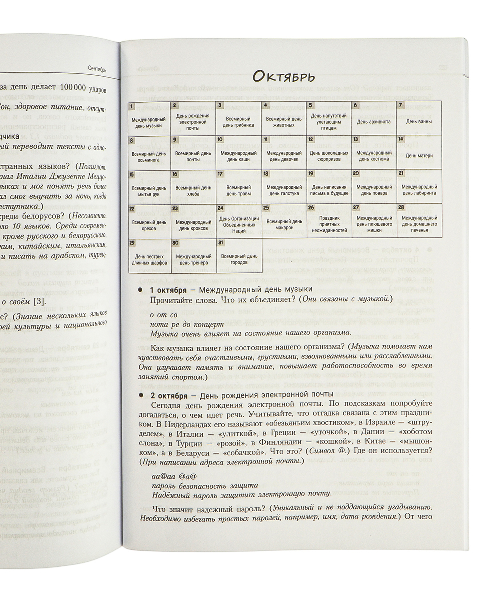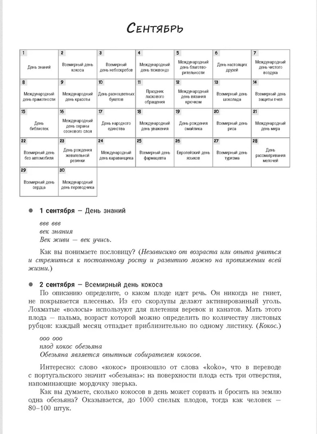 Пособие содержит задания, которые направлены на развитие и совершенствование каллиграфических навыков учащихся и охватывают все направления воспитательной работы через знакомство с ежедневными праздниками.