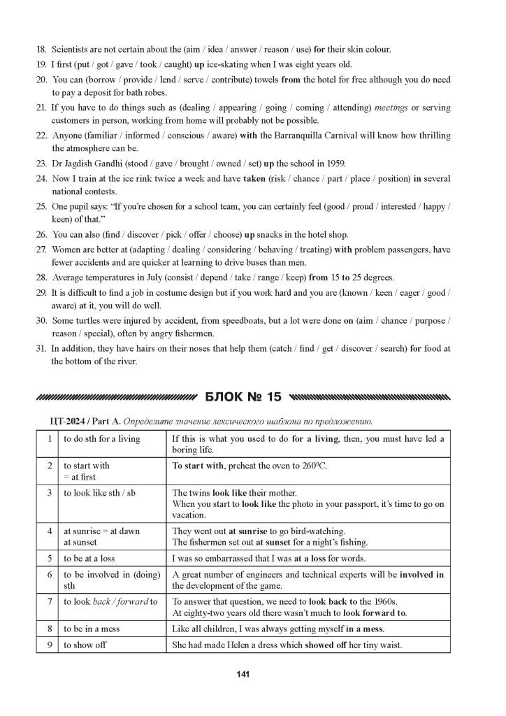 Включает справочный материал по всем предлогам, которые встретились в тестах ЦТ с 2010 по 2024 годы. В пособие включено большое количество тренировочных упражнений, к которым даются ключи.
