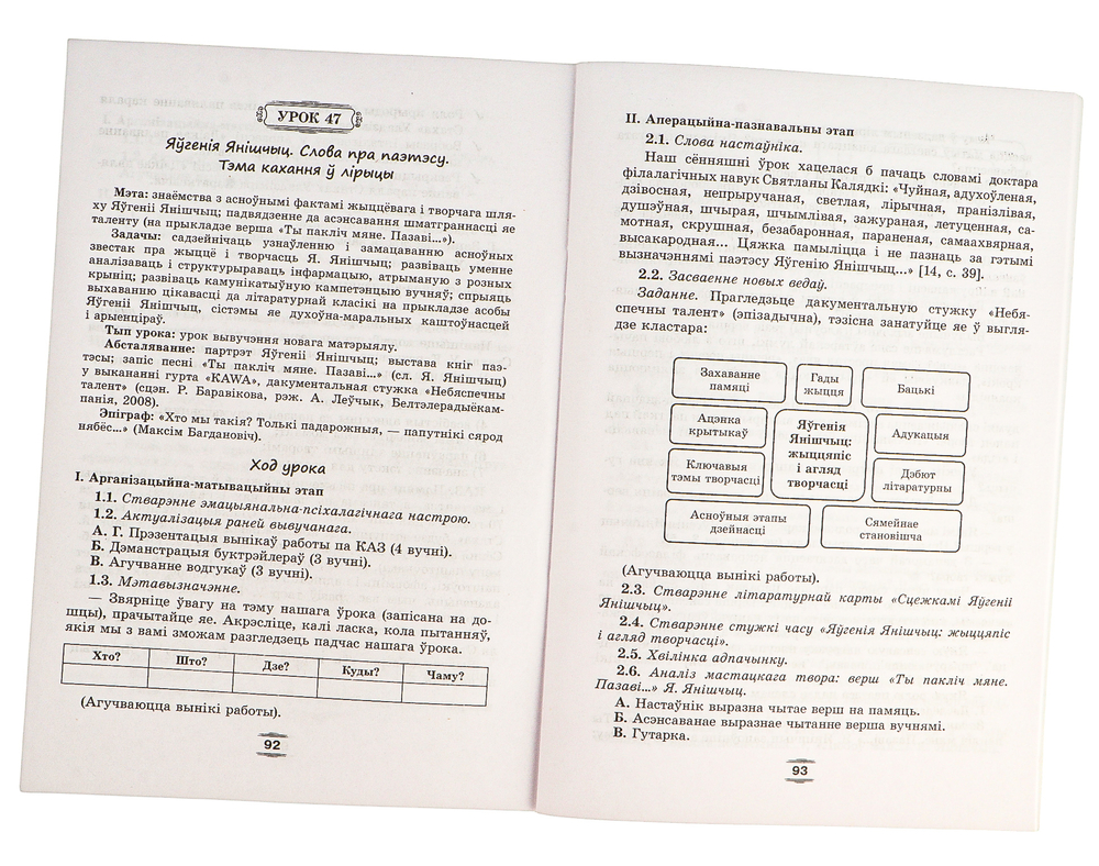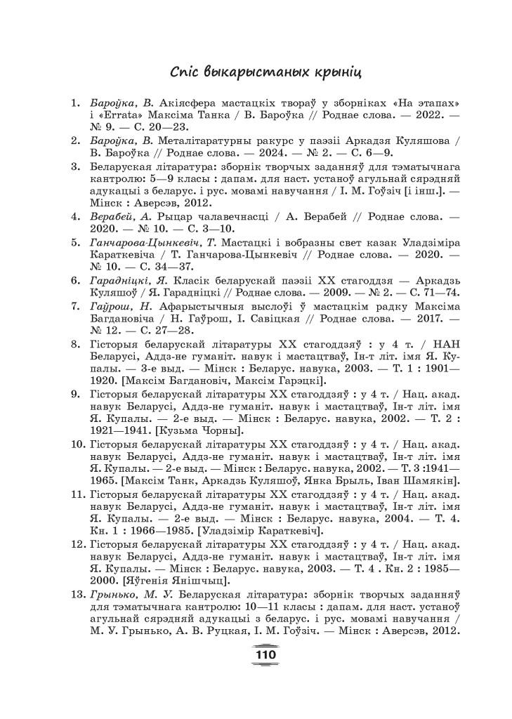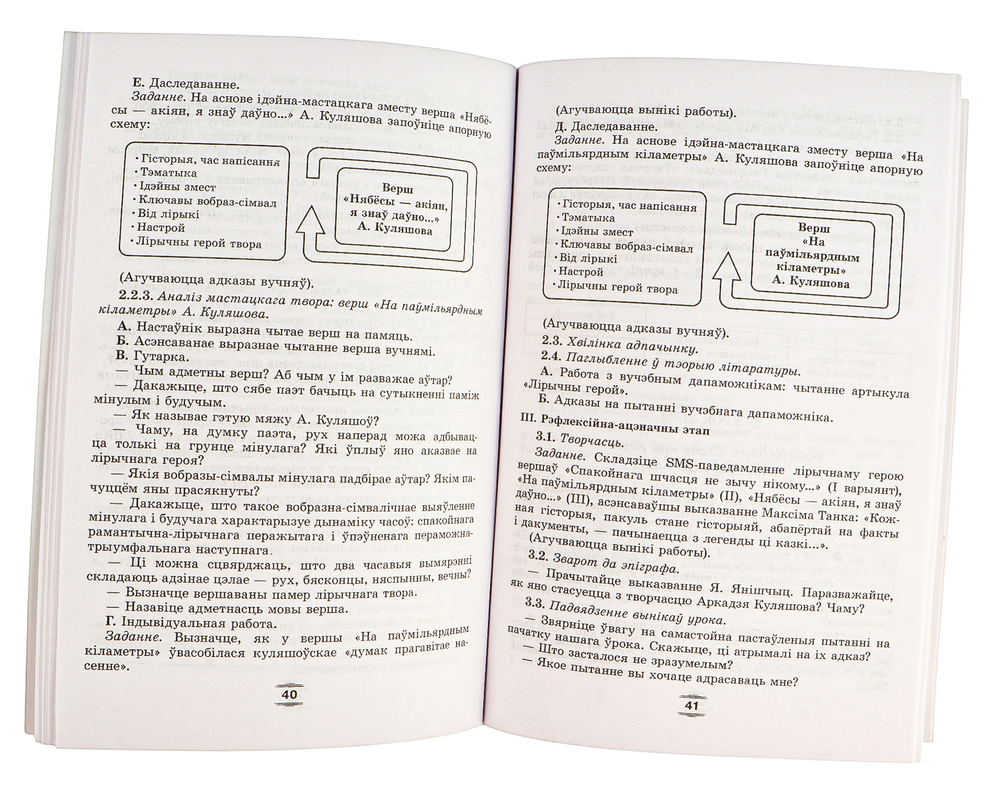 Распрацаваная сістэма пытанняў і заданняў дапаможніка скіравана на актывізацыю пазнавальнай дзейнасці і выпрацоўку творчых уменняў вучняў, утрымлівае дыферэнцыяцыю заданняў па ўзроўнях складанасці, у якіх таксама прасочваюцца выхады на міжпрадметныя (беларуская мова, гісторыя, мастацтва) і ўнутрыпрадметныя (паэзія, проза, драматургія, літаратуразнаўства) сувязі.