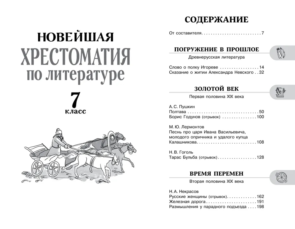 В хрестоматию вошли классические произведения отечественной литературы, рекомендованные к изучению в рамках государственной образовательной программы по литературе для 7 класса. Художественные тексты дополнены сопроводительными статьями с биографическими, историческими и литературоведческими фактами.