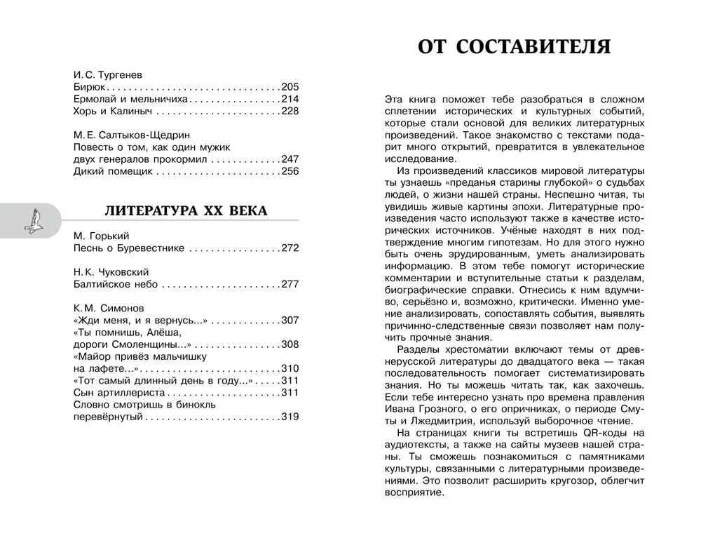 Составитель хрестоматии Марина Бастрыгина, учитель русского языка и литературы, суперфиналист конкурса "Педагоги года Москвы", полуфиналист Всероссийского конкурса "Классная тема!", показывает неразрывную связь исторических событий и великих литературных произведений. По QR-кодам доступны аудиоверсии произведений, а также культурологические материалы для расширения кругозора школьников.