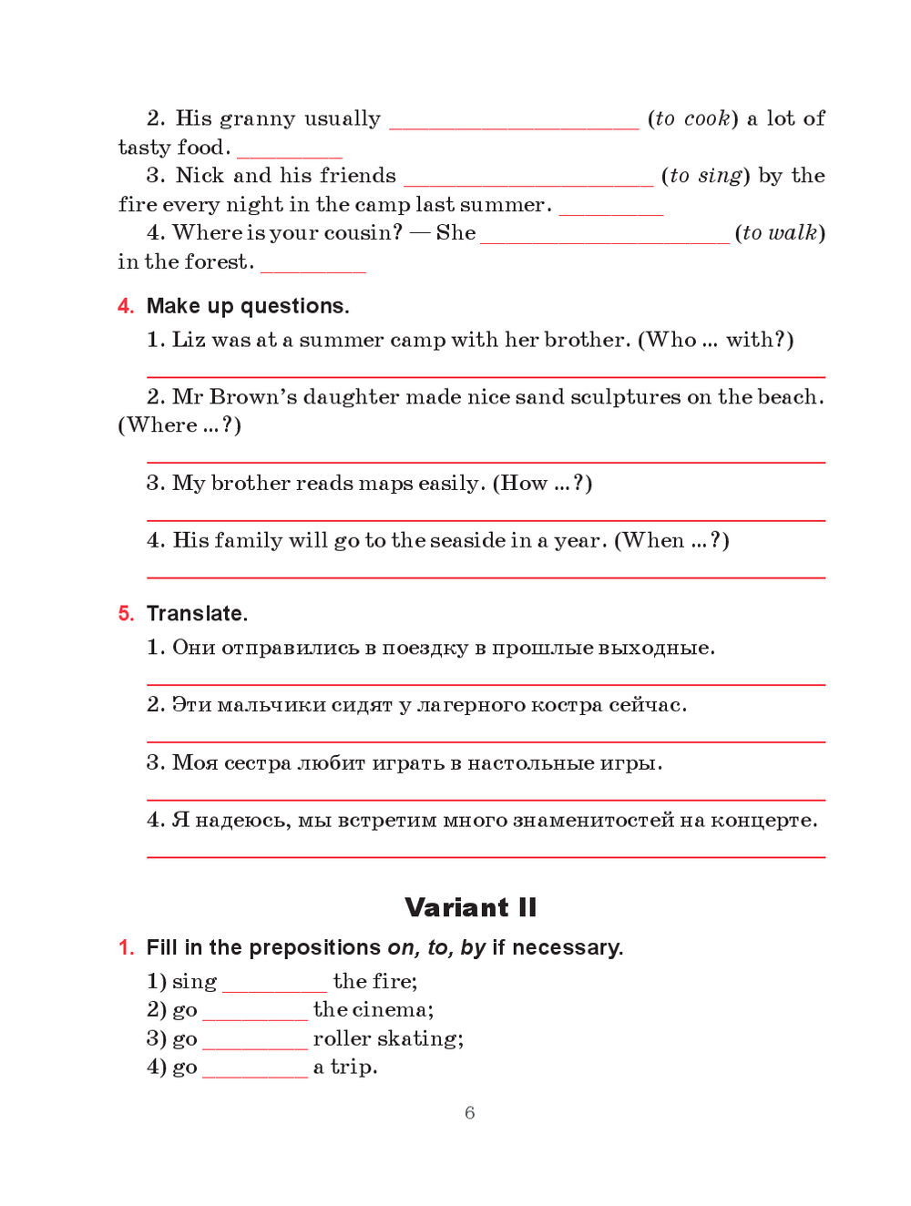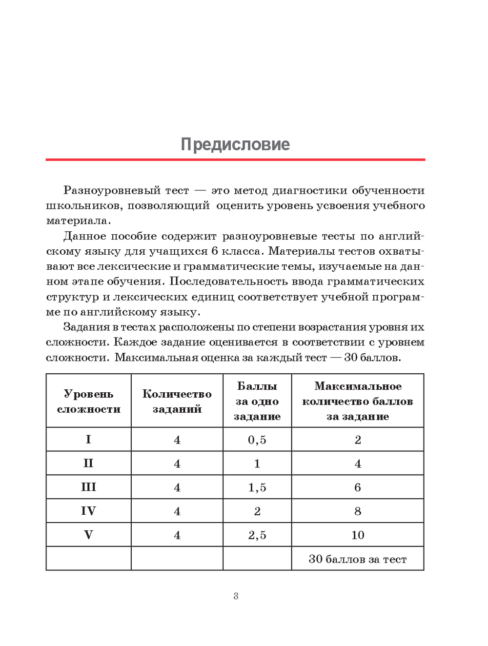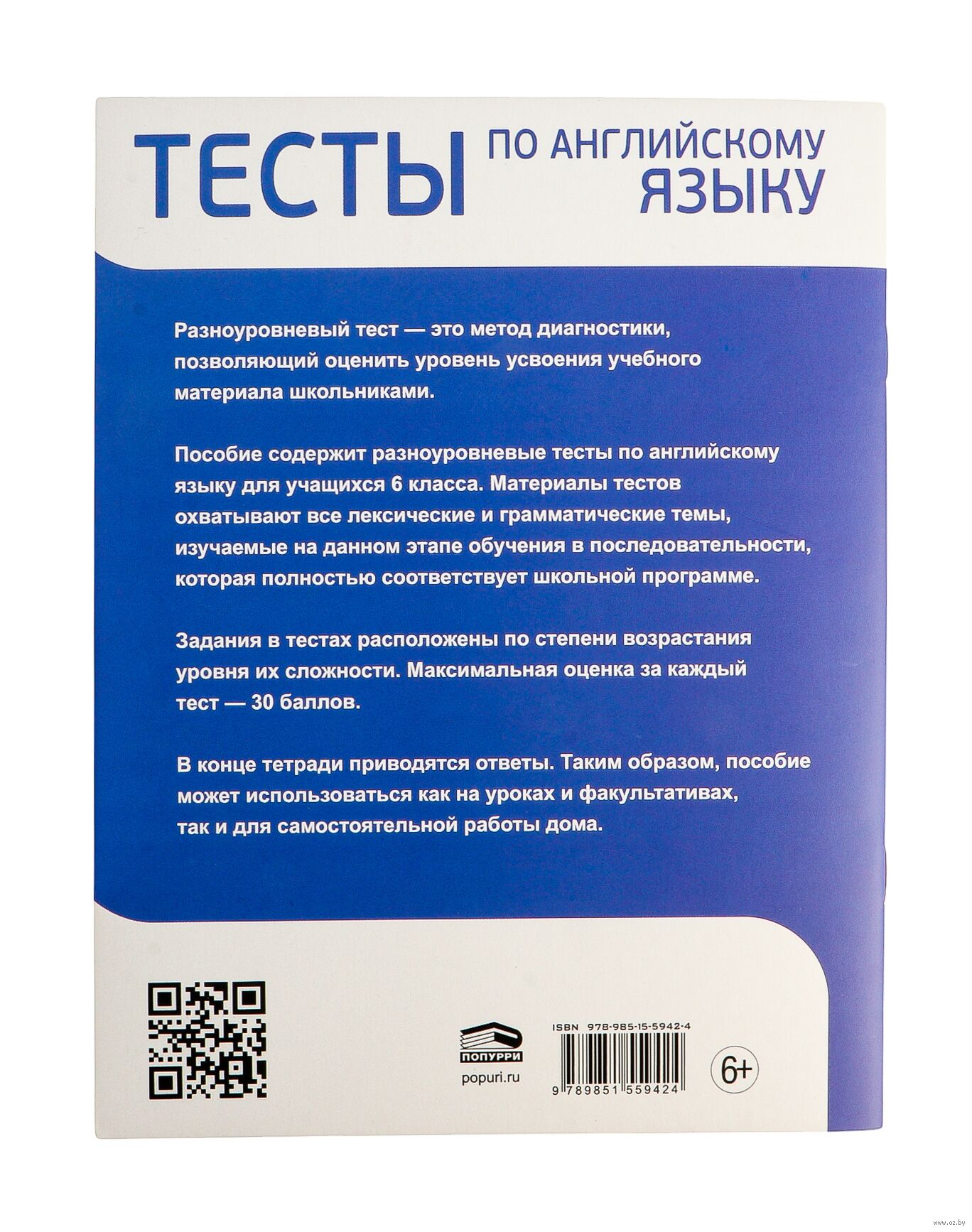 Пособие содержит разноуровневые тесты по английскому языку для учащихся 6 класса. Материалы тестов охватывают все лексические и грамматические темы, изучаемые на данном этапе обучения в последовательности, которая полностью соответствует школьной программе.
