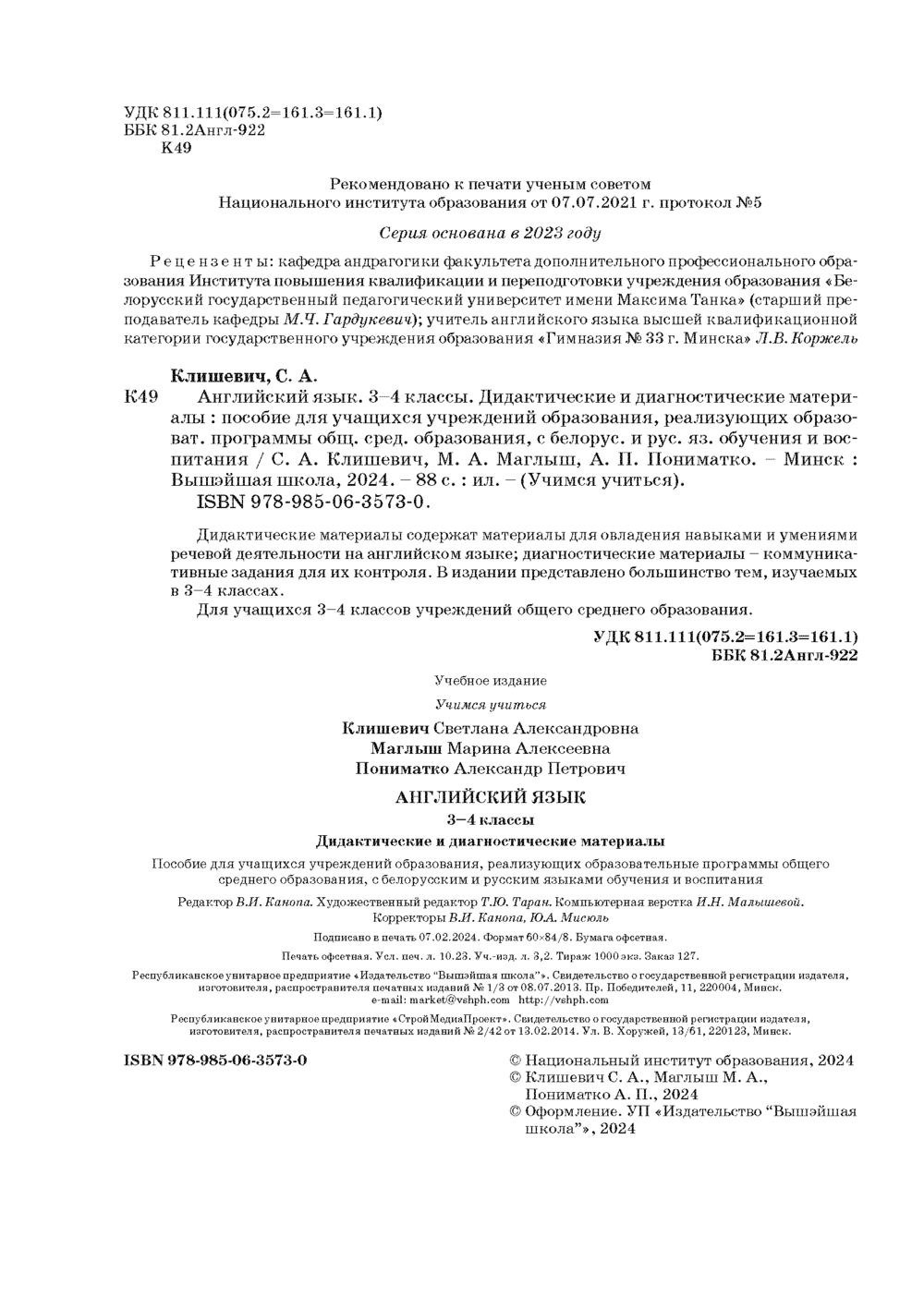 | Гриф | Допущено Министерством образования Республики Беларусь |