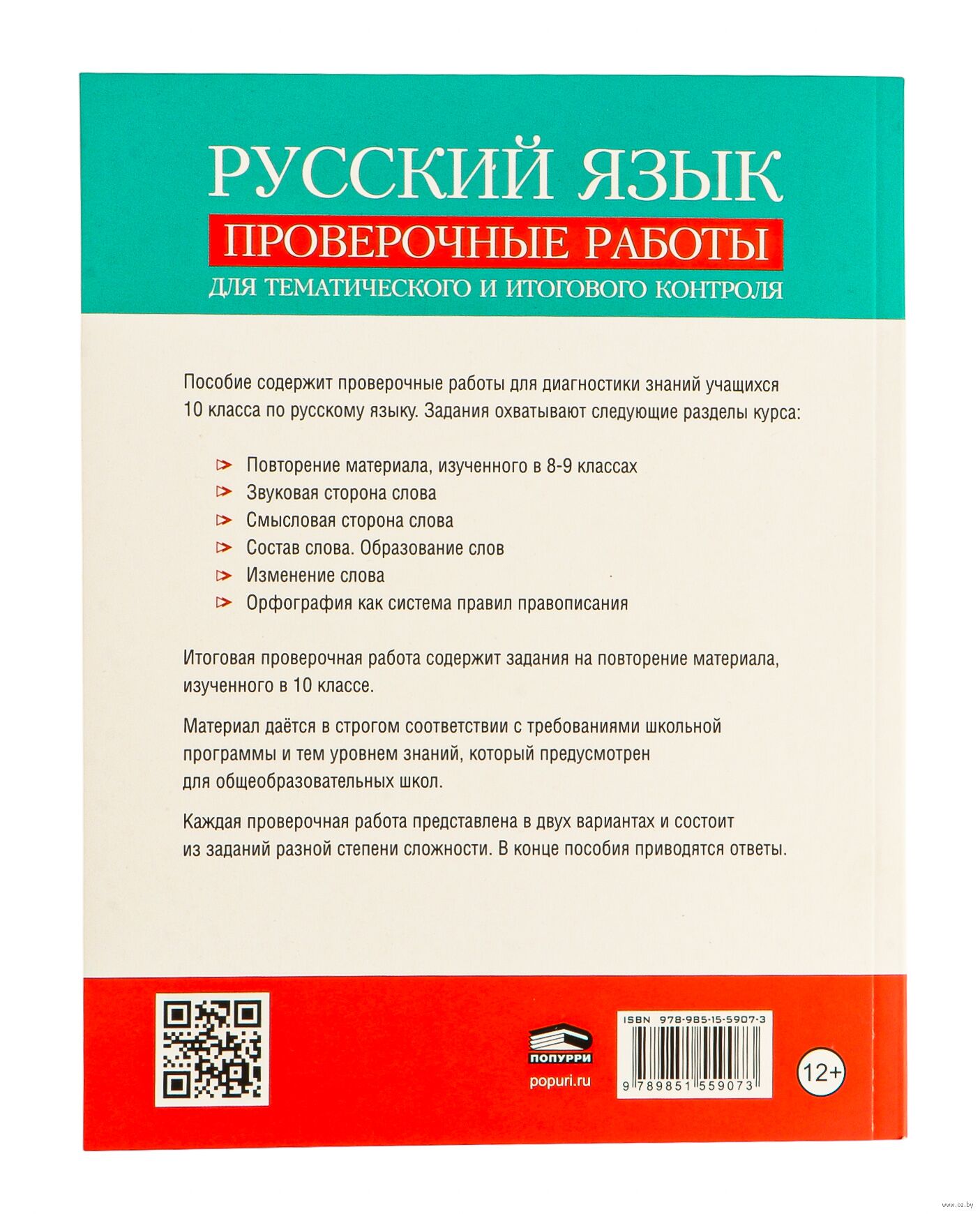 Пособие содержит проверочные работы для диагностики знаний учащихся 10 класса по русскому языку. Задания охватывают следующие разделы курса: