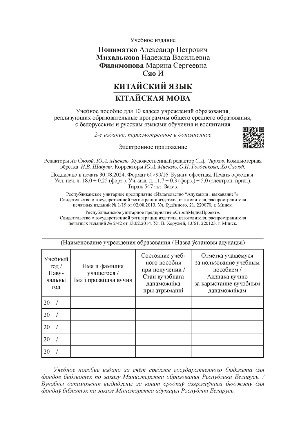 | Гриф | Допущено Министерством образования Республики Беларусь |