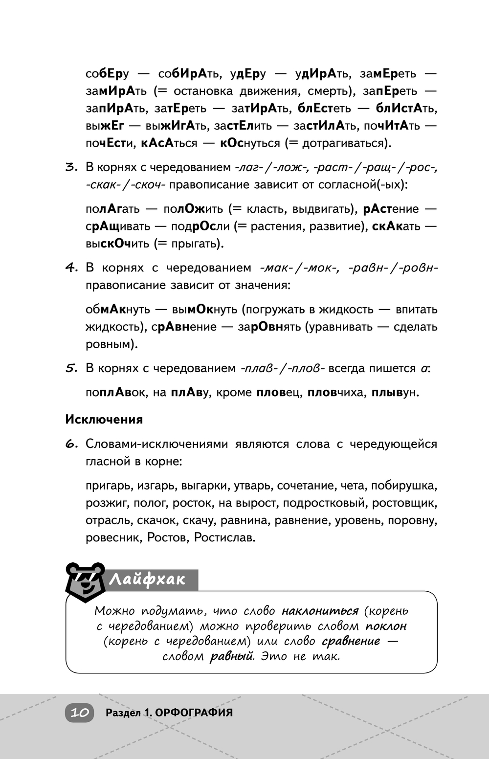 Книга разложит по полочкам все темы школьного курса за 5–11 классы: ты сможешь запросто повторить уже изученный материал и получить новые знания. Только действительно нужная для экзамена информация по разделам "Орфография", "Пунктуация", "Грамматика", "Орфоэпия и лексика", "Работа с текстом" и "Сочинение" преподносится наглядно и понятно, а также сопровождается примерами и комментариями. Вместе с теорией приводятся разные типы экзаменационных заданий с ответами и подробными пояснениями. В конце справочника расположено полезное приложение по паронимам.