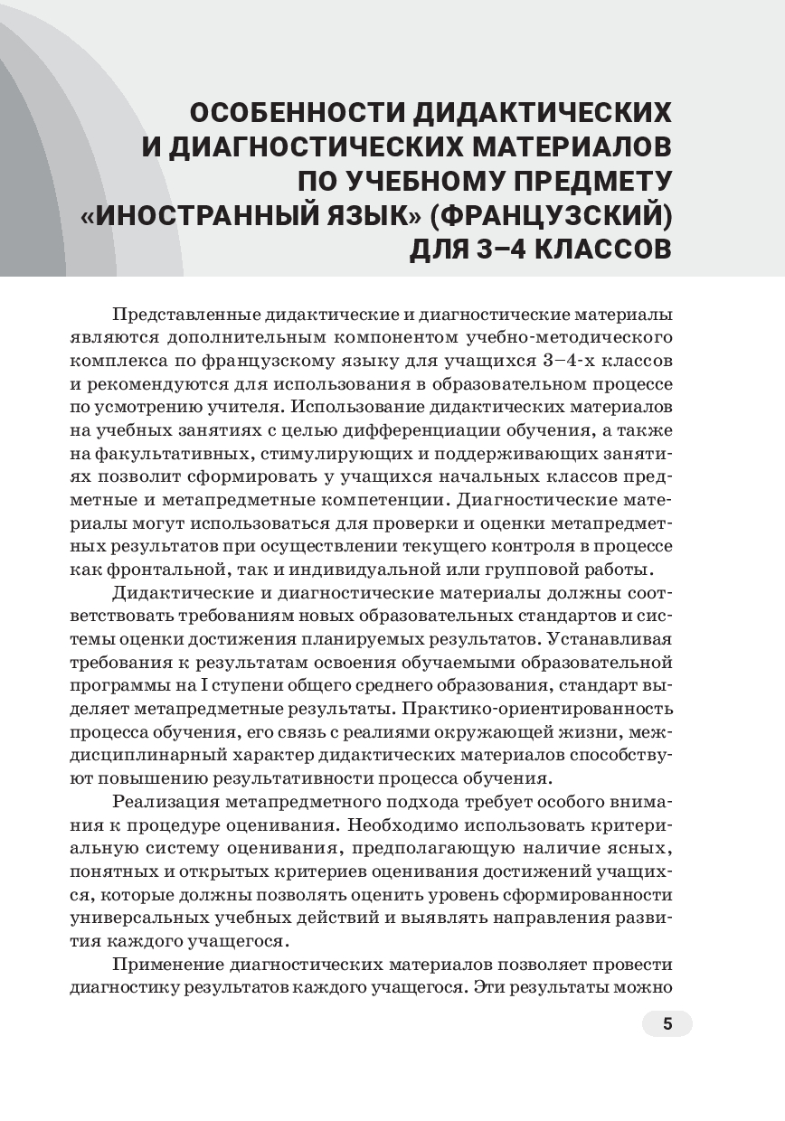 Дидактические материалы содержат материалы для овладения навыками и умениями речевой деятельности на французском языке; диагностические материалы – коммуникативные задания для их контроля. В издании представлено большинство тем, изучаемых в 3–4-х классах.