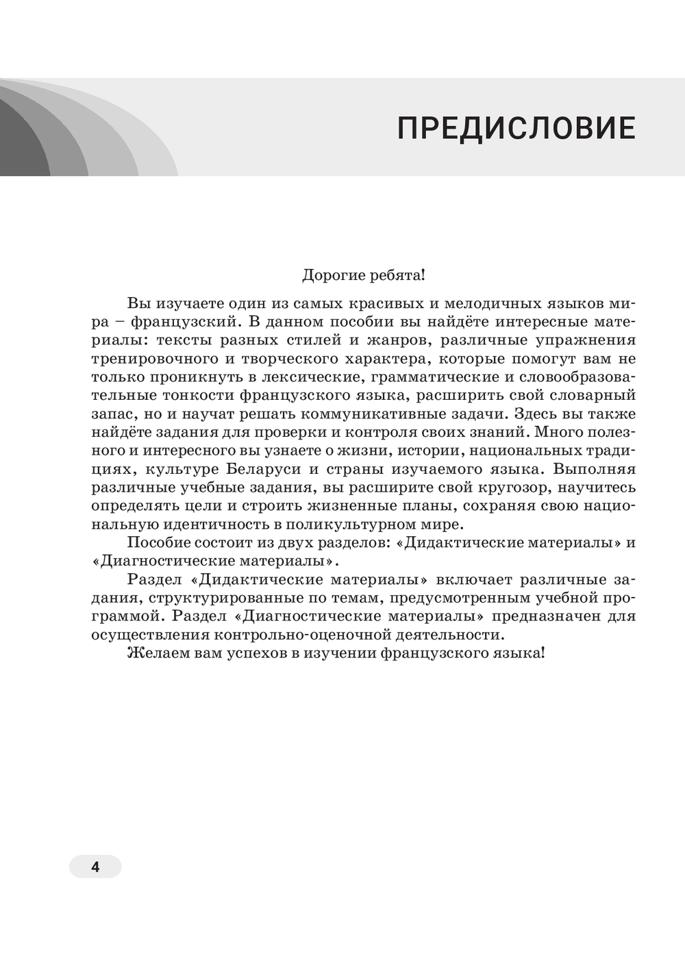 Дидактические материалы содержат материалы для овладения навы- ками и умениями речевой деятельности на французском языке; диагностические материалы – тесты для их контроля. В книге представлено большинство тем, которые изучаются в 5-9 классах.