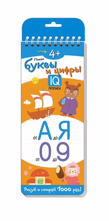 С помощью этого пособия ребёнок научится красиво писать буквы и цифры. Сначала их нужно обвести по линиям, а потом написать самостоятельно. Специальное покрытие на страничках позволит тренироваться любое количество раз. Освоив буквы, ребёнок перейдёт к написанию и чтению первых слов. На отдельных страничках даны примеры на сложение и вычитание, порядковый счёт и состав числа.
