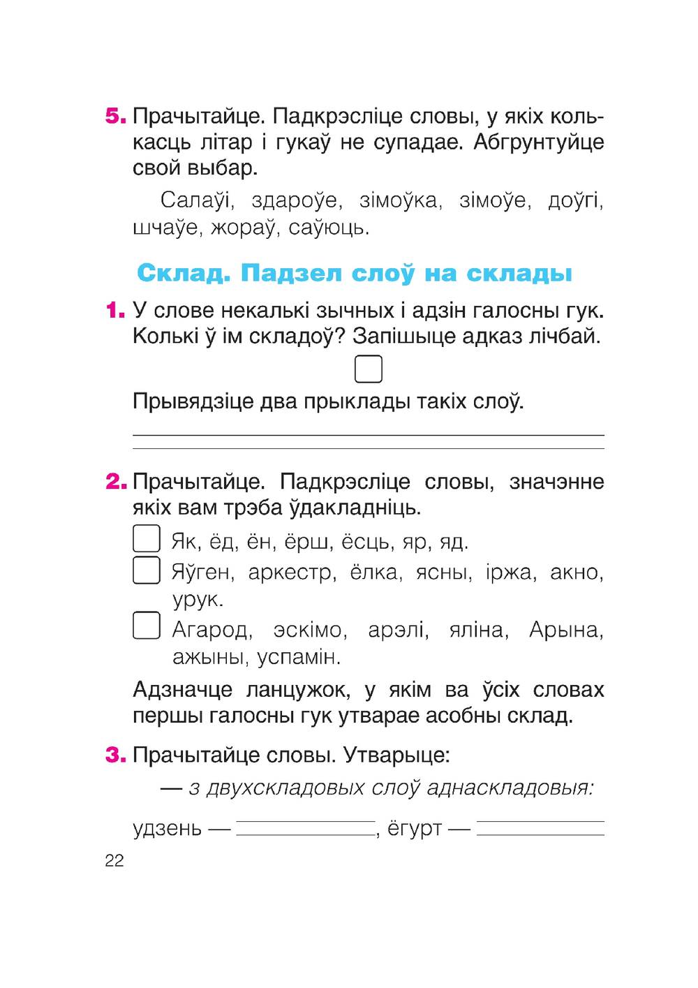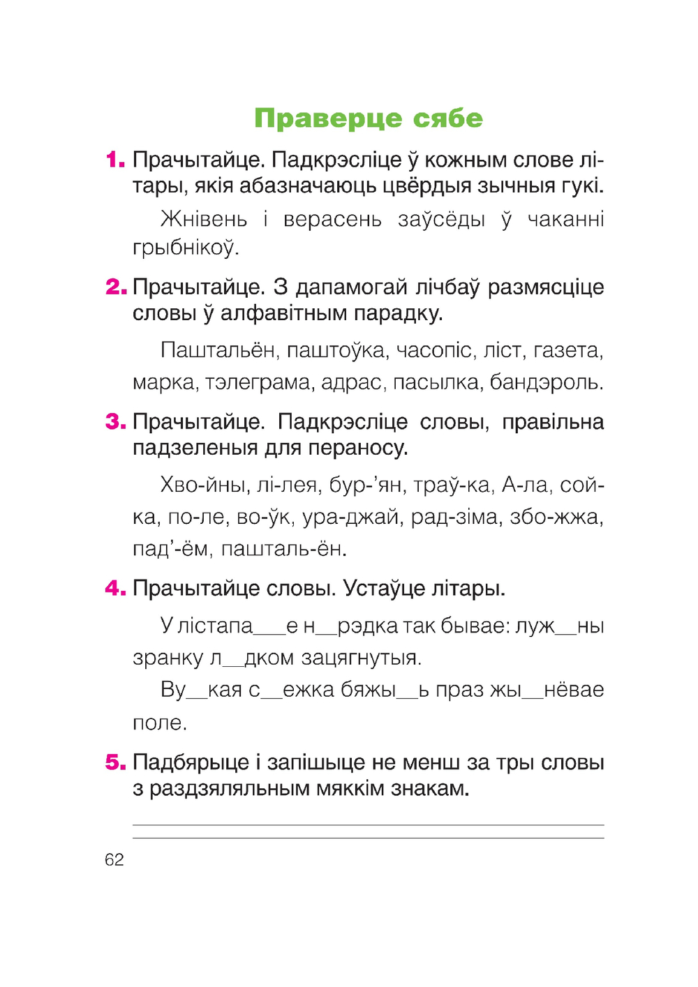 Дапаможнік падрыхтаваны згодна з праграмай па беларускай мове для 2-га класа устаноў адукацыі, якія рэалізуюць агульнаадукацыйныя праграмы агульнай сярэдняй адукацыі, з рускай мовай навучання і выхавання. У выданні падаецца сістэма практычных заданняў, накіраваных на выпрацоўку правільнага вымаўлення спецыфічных беларускіх гукаў, развіццё вуснага маўлення, пашырэнне слоўнікавага запасу другакласнікаў. У рабочы сшытак таксама ўключаны алгарытмы, апорныя схемы, тэставыя заданні, якія дапамогуць вучням паўтарыць правілы, замацаваць атрыманыя веды, праверыць якасць засваення матэрыялу.