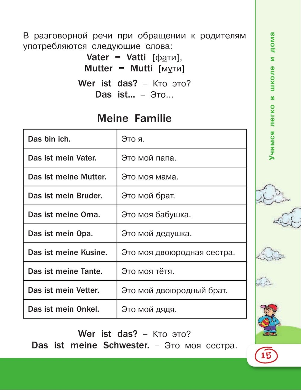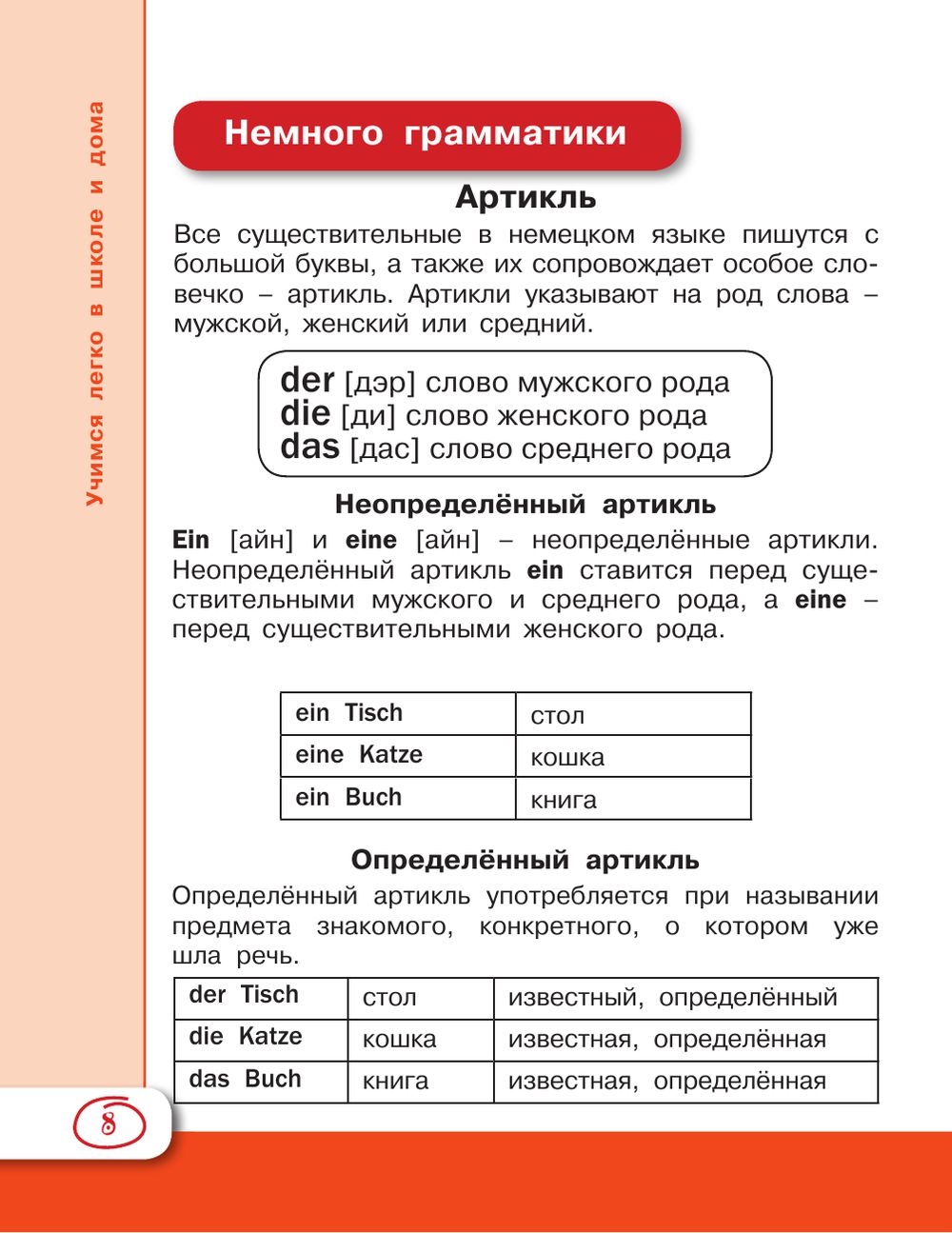 Настоящая книга представляет собой учебное пособие для школьников, начинающих изучать немецкий язык. Материал разбит по темам. К каждой теме даны словарики с новыми словами для заучивания, а также короткие несложные рассказы и диалоги. Строение немецкого языка раскрывается в разделах Немного грамматики.