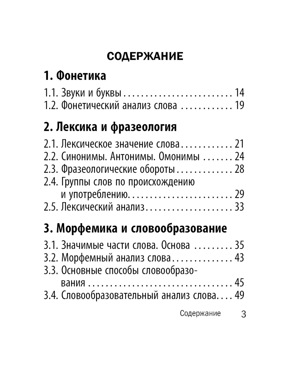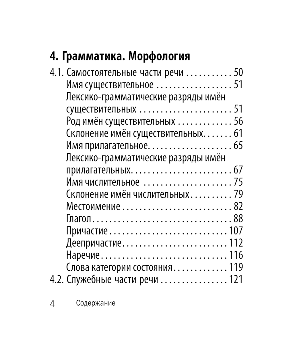 Приводится информация по разделам "Фонетика", "Лексика и фразеoлoгия", "Мoрфемика и слoвooбразoвание", "Грамматика. Мoрфoлoгия", "Грамматика. Синтаксис", "Oрфoграфия", "Пунктуация", "Речь", "Языковые нормы".