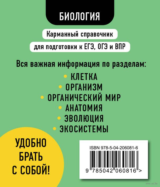 Справочник содержит все темы школьной программы по биологии с 5 по 11 классы. Теоретический материал удобно структурирован и представлен понятным языком.