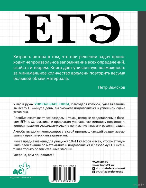 Пособие охватывает все разделы и темы, которые представлены в базовом ЕГЭ по математике, и предлагает уникальную методику подготовки, которая поможет учащимся улучшить понимание и навыки решения задач.