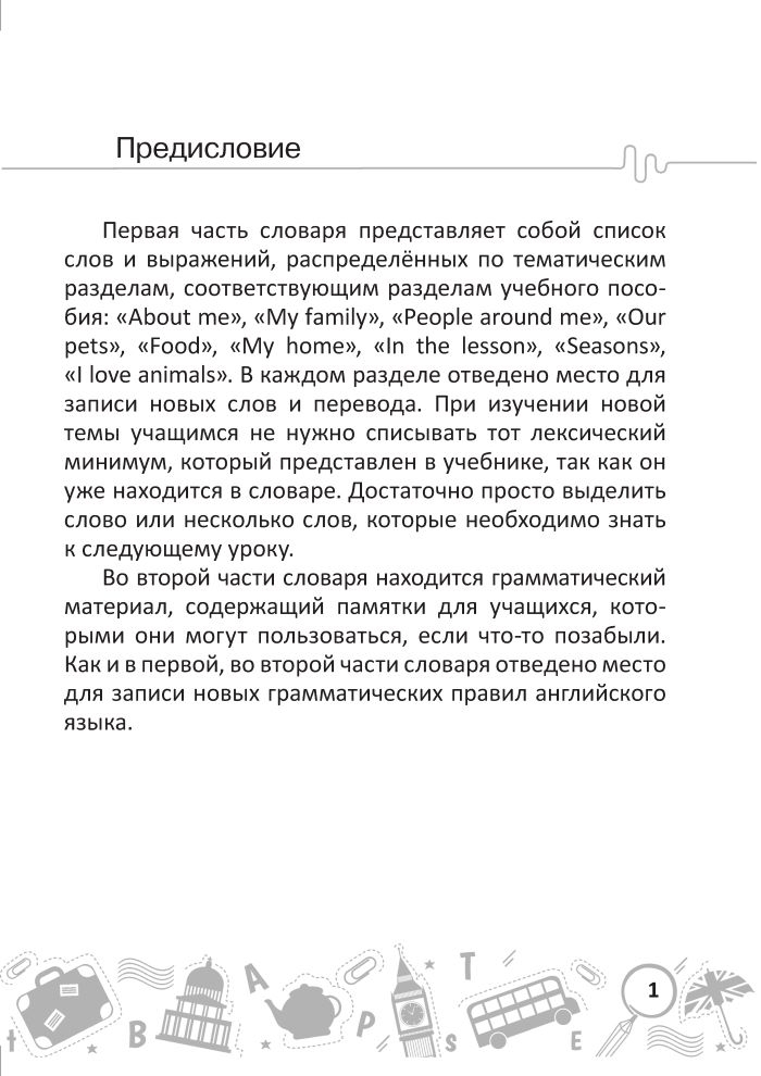 Данное пособие представляет собой словарь, состоящий из двух частей: первая часть – список слов и выражений, распределенных по тематическим разделам, соответствующим разделам учебного пособия; вторая – грамматический материал, содержащий памятки.