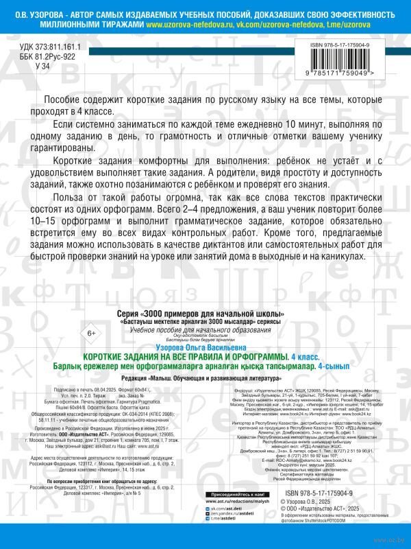Пособие содержит короткие задания по русскому языку на все темы, которые проходят в 4 классе. Если системно заниматься по каждой теме ежедневно 10 минут, выполняя по одному заданию в день, то грамотность и отличные отметки вашему ученику гарантированы.