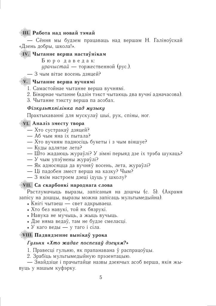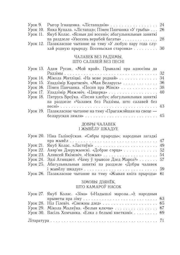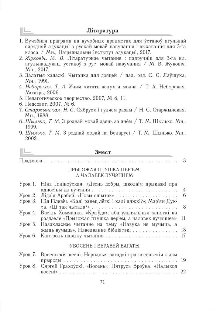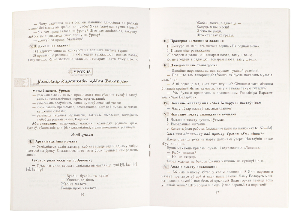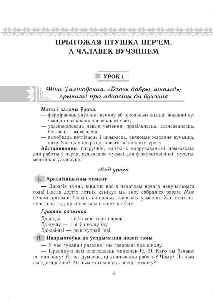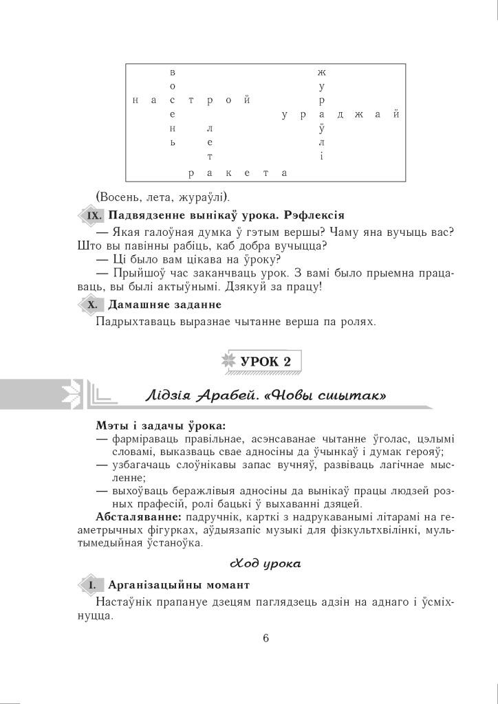 Змест прапанаваных урокаў накіраваны на выпрацоўку ў вучняў выразнага хуткага чытання, развіццё мовы, узбагачэнне слоўнікавага запасу, прывіццё любові да роднай мовы. Урокі змяшчаюць разнастайны займальны матэрыял (загадкі, гульні, крыжаванкі), практыкаванні для артыкуляцыйнай гімнастыкі, розныя формы і метады работы з тэкстам.