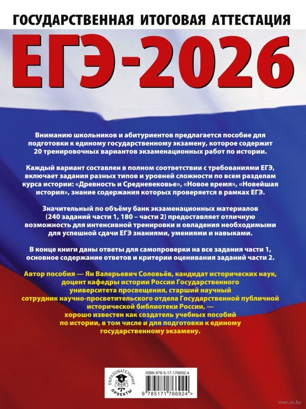 Каждый вариант составлен в соответствии с требованиями ЕГЭ, включает задания разных типов и уровней сложности по всем разделам курса истории: "Древность и Средневековье", "Новое время", "Новейшая история", знание содержания которых проверяется в рамках ЕГЭ.