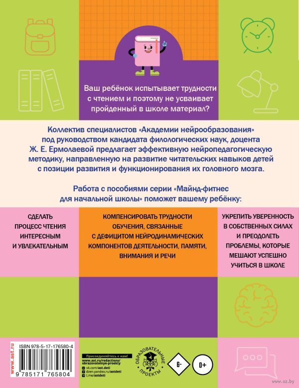 Пособие серии "Майнд-фитнес для начальной школы" содержит материалы для обучающихся 2 класса, основанные на авторской нейропедагогической методике развития навыков чтения. Работа с тетрадью поможет им компенсировать трудности обучения, связанные с дефицитом нейродинамических компонентов деятельности, памяти, внимания и речи.
