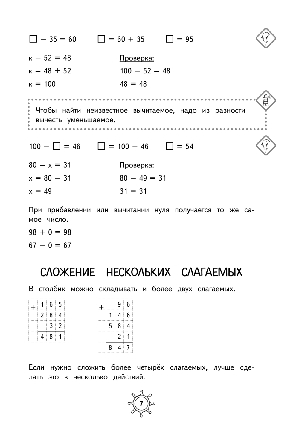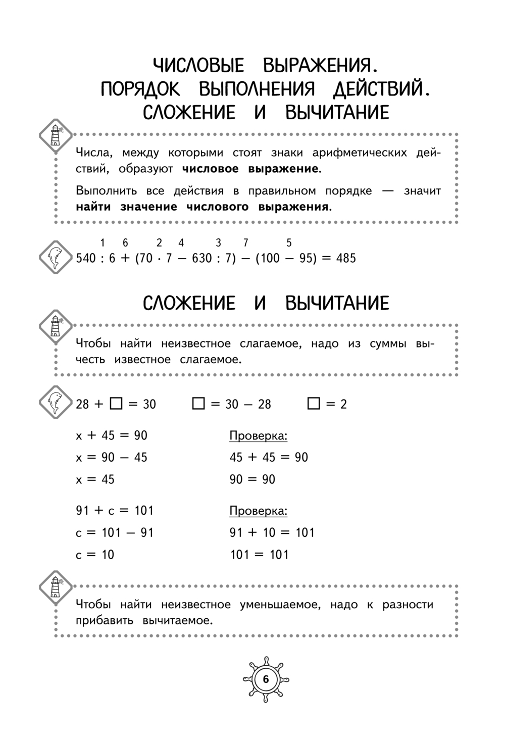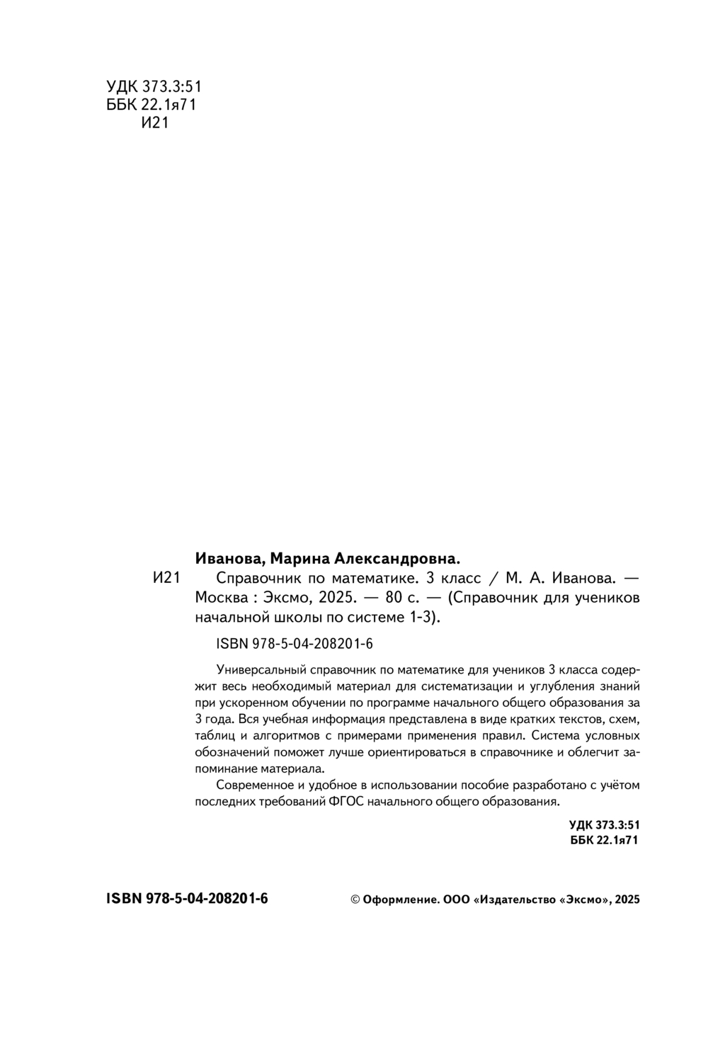 Универсальный справочник по математике для учеников 3 класса содержит весь необходимый материал для систематизации и углубления знаний при ускоренном обучении по программе начального общего образования за 3 года. Вся учебная информация представлена в виде кратких текстов, схем, таблиц и алгоритмов с примерами применения правил. Система условных обозначений поможет лучше ориентироваться в справочнике и облегчит запоминание материала.