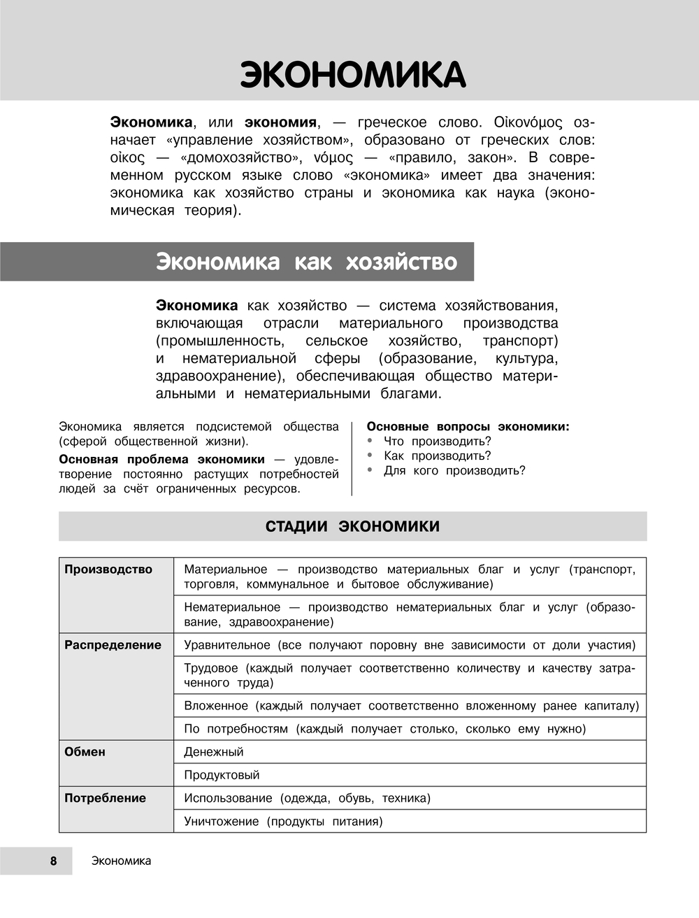 Справочник содержит информацию из школьной программы по обществознанию, необходимую для успешной сдачи контрольных и экзаменационных работ, а также ОГЭ и ВПР. Каждая тема разделена на четыре блока: теоретические сведения, подробный разбор типовых заданий, практику для самостоятельной работы и ответы с пояснениями.