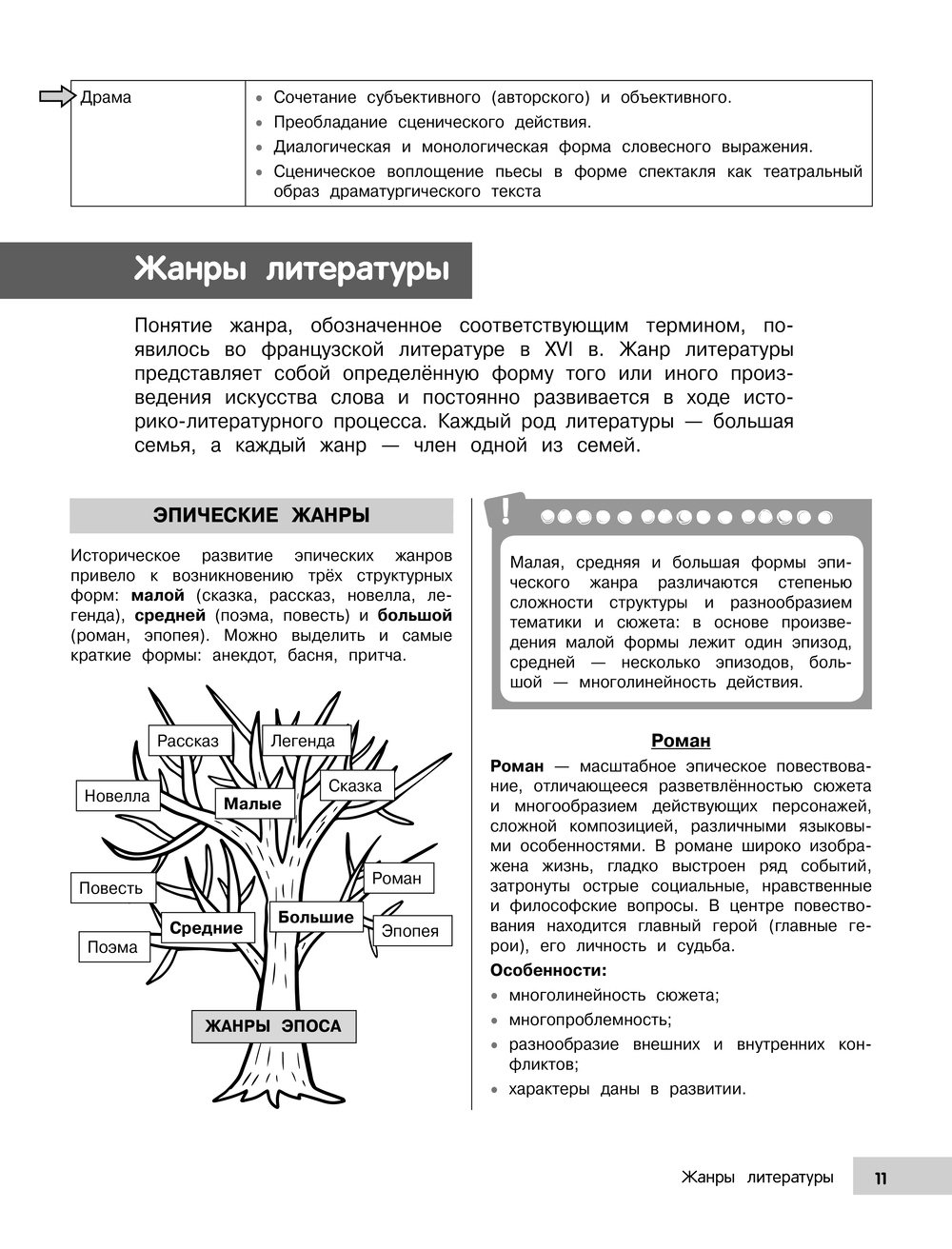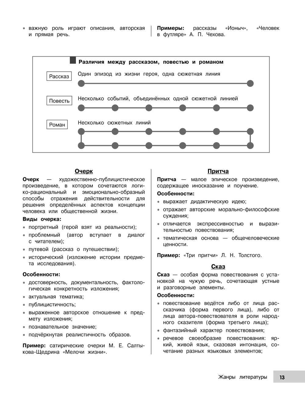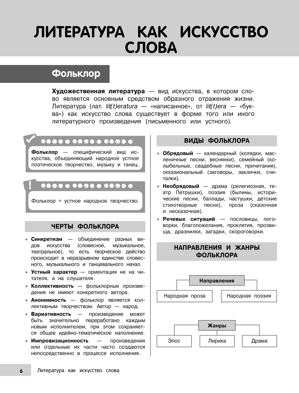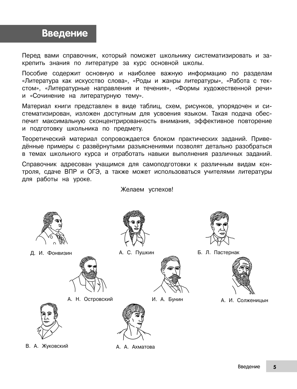 Справочник содержит систематизированную информацию из школьной программы по литературе, необходимую для успешной сдачи контрольных и экзаменационных работ, а также ОГЭ и ВПР. Каждая тема разделена на четыре блока: подробные теоретические сведения, разбор типовых заданий, практику для самостоятельной работы и ответы с пояснениями.