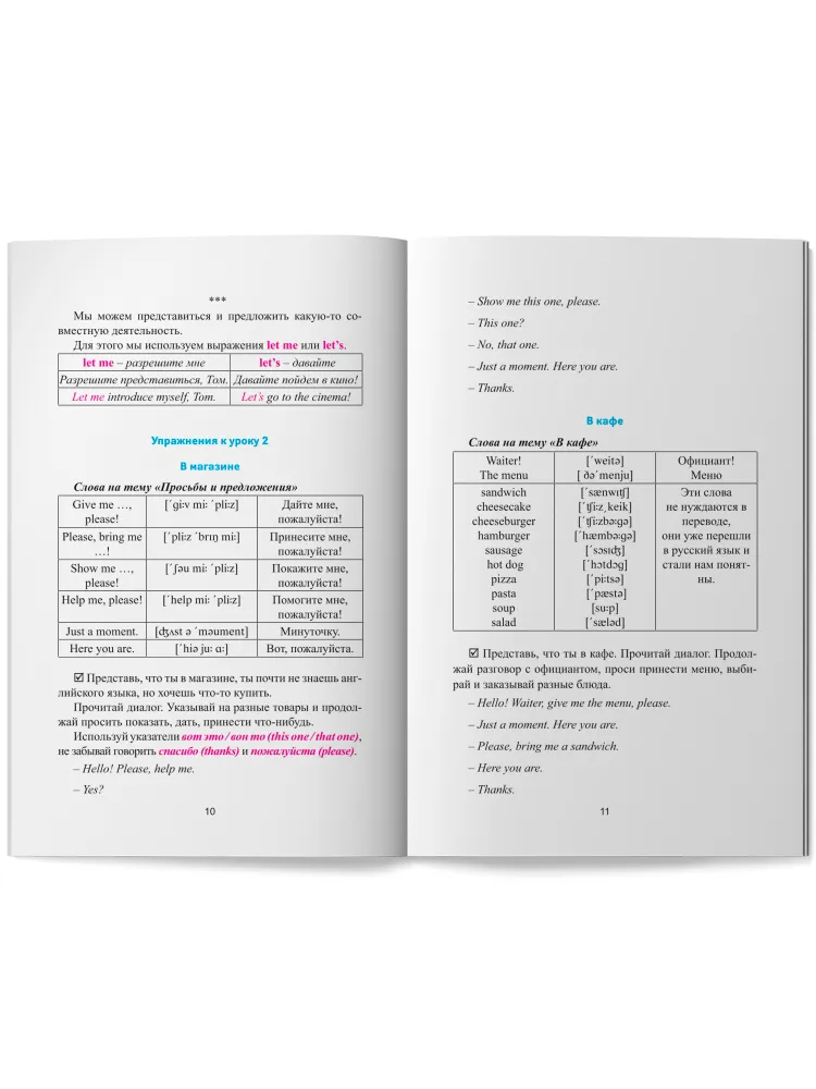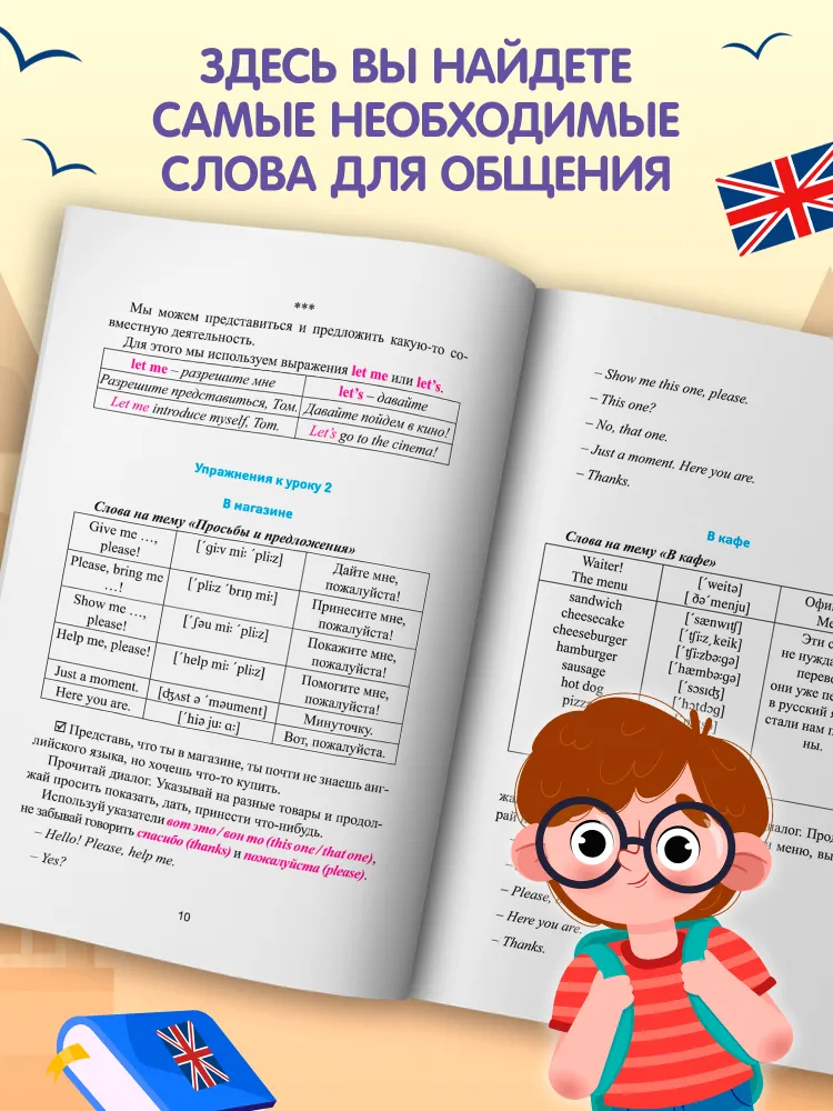 В книге вы найдете самые необходимые слова для общения. Вы сможете познакомиться, рассказать о своей семье и профессии, заказать еду в кафе и ресторане, сделать покупки в магазине, сориентироваться в городе. Эта книга поможет вам заполнить пробелы в базовых знаниях английского языка и создать прочную основу, чтобы в дальнейшем продолжать совершенствовать свои навыки общения по-английски. А для тех, кто учит английский "с нуля", – это и вовсе находка.
