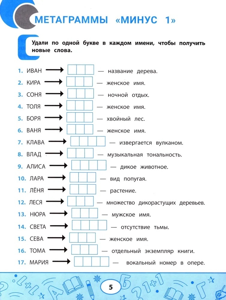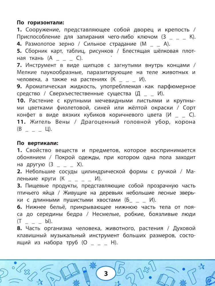 В сборник включены разнообразные игровые задания со словами: кроссворды, шарады, шифровки, анаграммы, метаграммы, палиндромы и другие головоломки. Читатели найдут много упражнений на перестановку букв и слогов, трансформацию слов, замену звуков, постановку ударения, подбор синонимов, антонимов и многозначных слов. Выполнение игровых заданий будет способствовать расширению словарного запаса детей, развитию логики, внимания и мышления. С помощью представленных игровых заданий можно организовать полезный и интересный досуг для всей семьи.