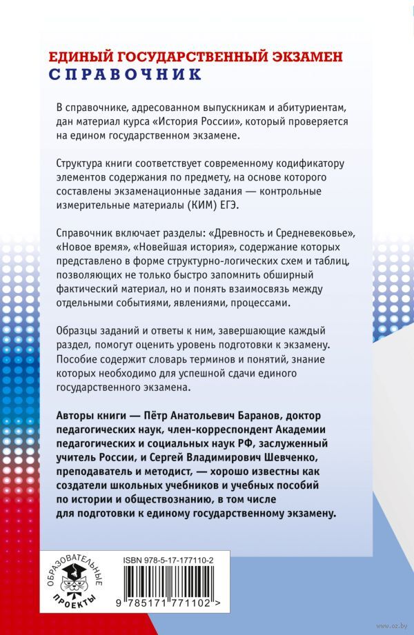 В справочнике, адресованном выпускникам и абитуриентам, дан материал курса "История России", который проверяется на едином государственном экзамене.