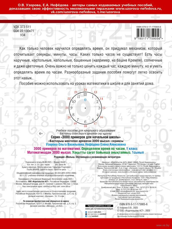 Вашему вниманию представлена книга "3000 примеров по математике. Определяем время по часам. 1 класс".
