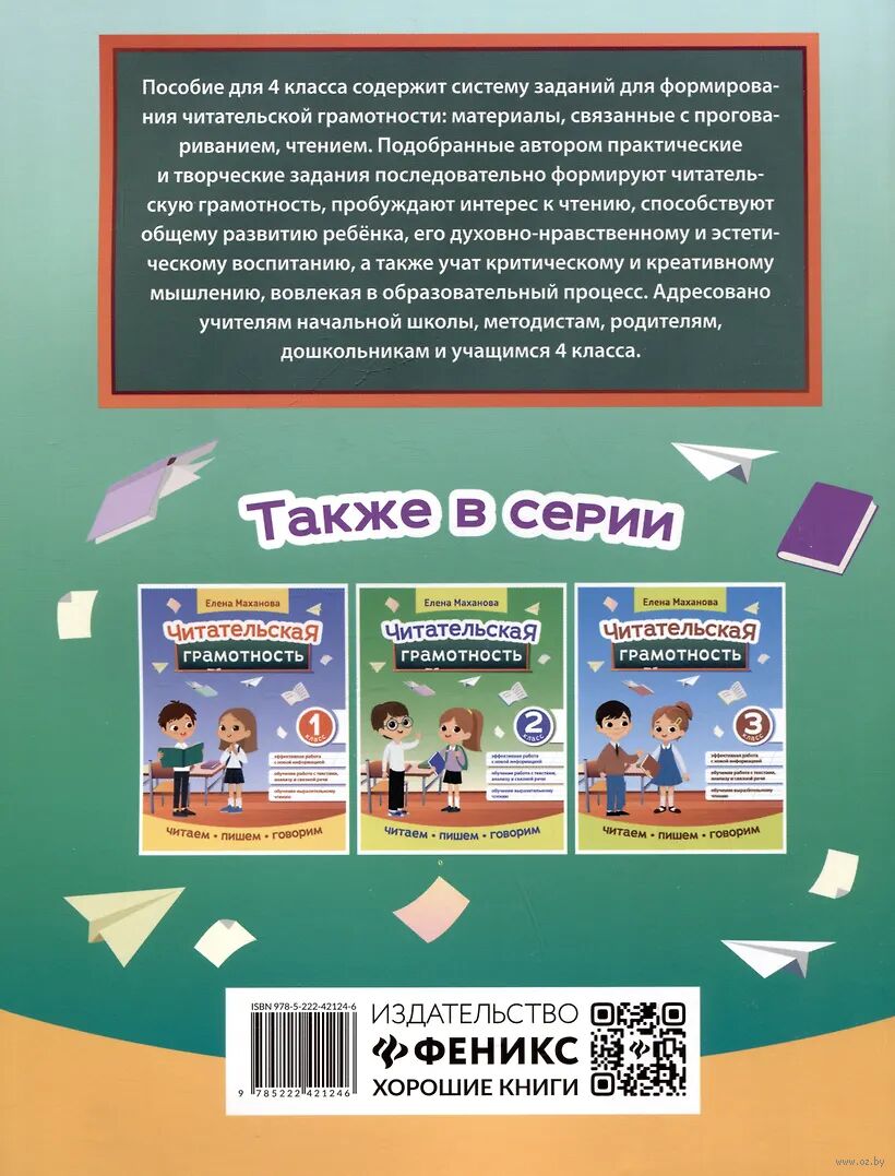 Пособие для 4 класса содержит систему заданий для формирования внимательного и осознанного чтения и развития умений анализировать текст, формулировать правильные развёрнутые ответы. Подобранные по уровню практические и творческие задания последовательно формируют читательскую грамотность, пробуждают интерес к чтению, способствуют общему развитию ребёнка, его духовно-нравственному и эстетическому воспитанию, а также учат критическому и креативному мышлению, вовлекая в образовательный процесс. Адресовано учителям начальной школы, методистам, родителям, учащимся 4 класса.