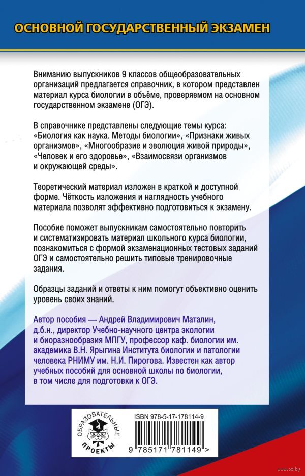 Пособие может быть использовано учащимися для подготовки к ОГЭ и самоконтроля, а учителями – для подготовки учащихся основной школы к итоговой аттестации по биологии.