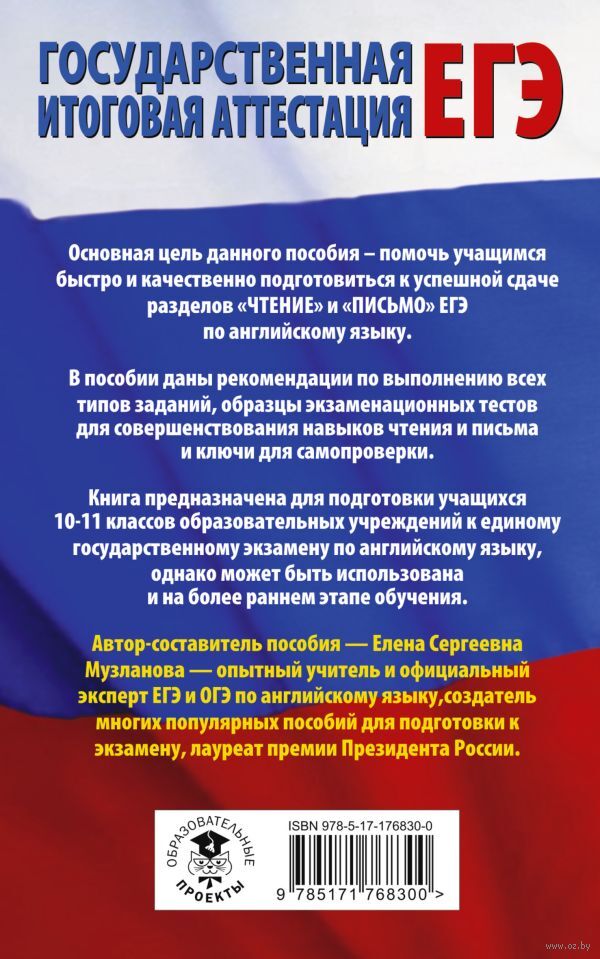 Цель пособия – помочь учащимся 10-11 классов и абитуриентам в кратчайшие сроки подготовиться к успешной сдаче разделов "Чтение" и "Письмо" единого государственного экзамена по английскому языку.