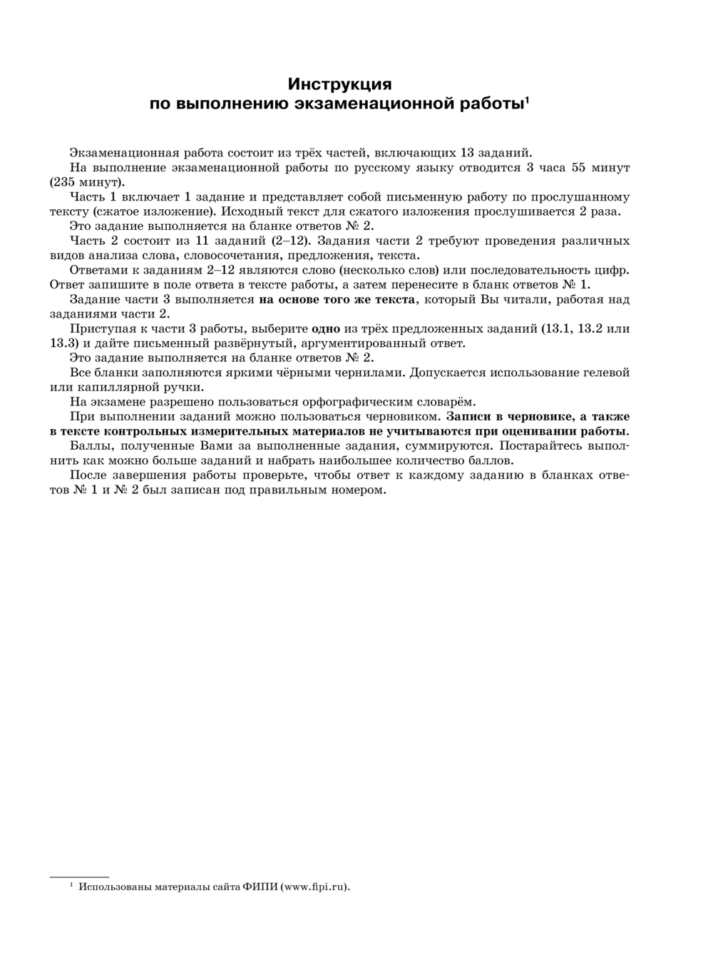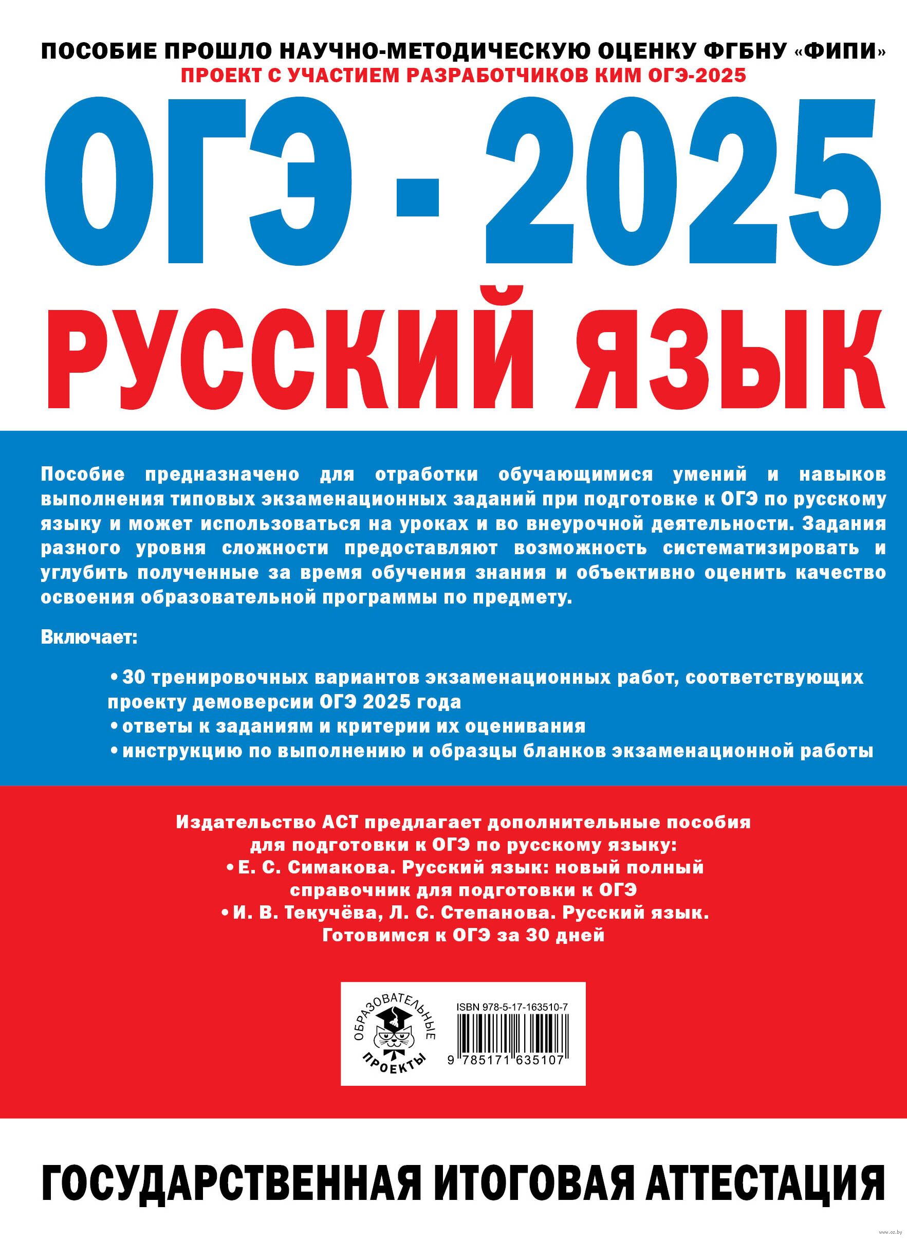Пособие предназначено для отработки обучающимися умений и навыков выполнения типовых экзаменационных заданий при подготовке к ОГЭ по русскому языку и может использоваться на уроках и во внеурочной деятельности. Задания разного уровня сложности предоставляют возможность систематизировать и углубить полученные за время обучения знания и объективно оценить качество освоения образовательной программы по предмету.