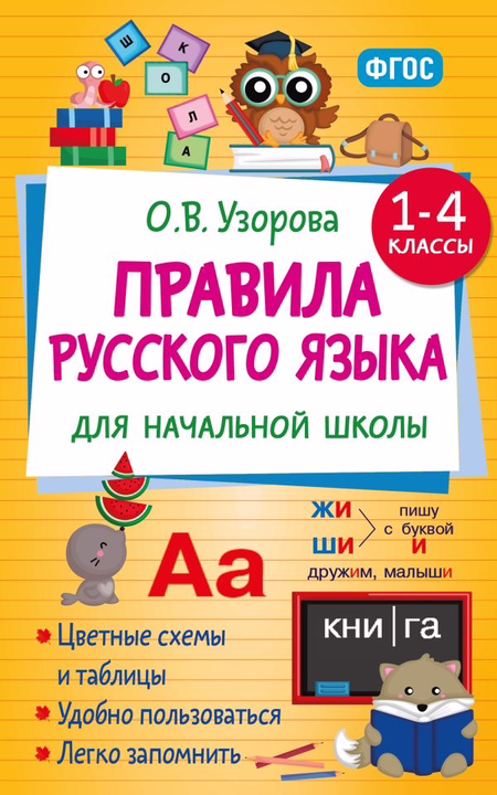 Пособие "Правила русского языка для начальной школы. 1-4 классы" основано на авторской методике известного педагога-практика О. В. Узоровой. Все правила даны в книге в виде цветных схем и таблиц. Пособие поможет школьникам освоить наиболее трудные темы школьной программы и успешно подготовиться к контрольным и проверочным работам по русскому языку.