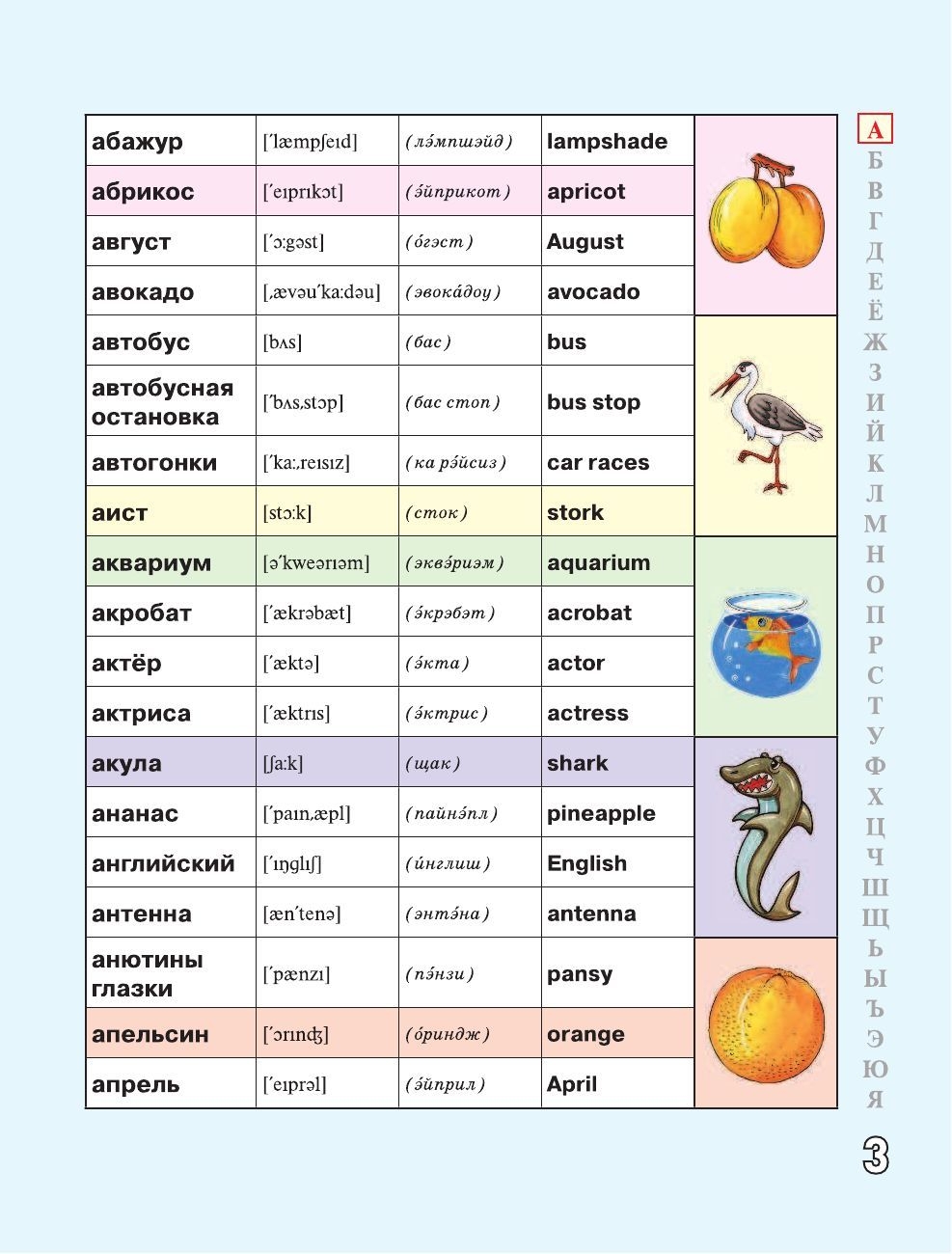 Словарь содержит обязательный минимум слов, необходимых для изучения школьной программы по иностранному языку. Материал выстроен по алфавитному принципу и снабжен русско-английской транскрипцией, что делает английский язык более доступным для изучения.