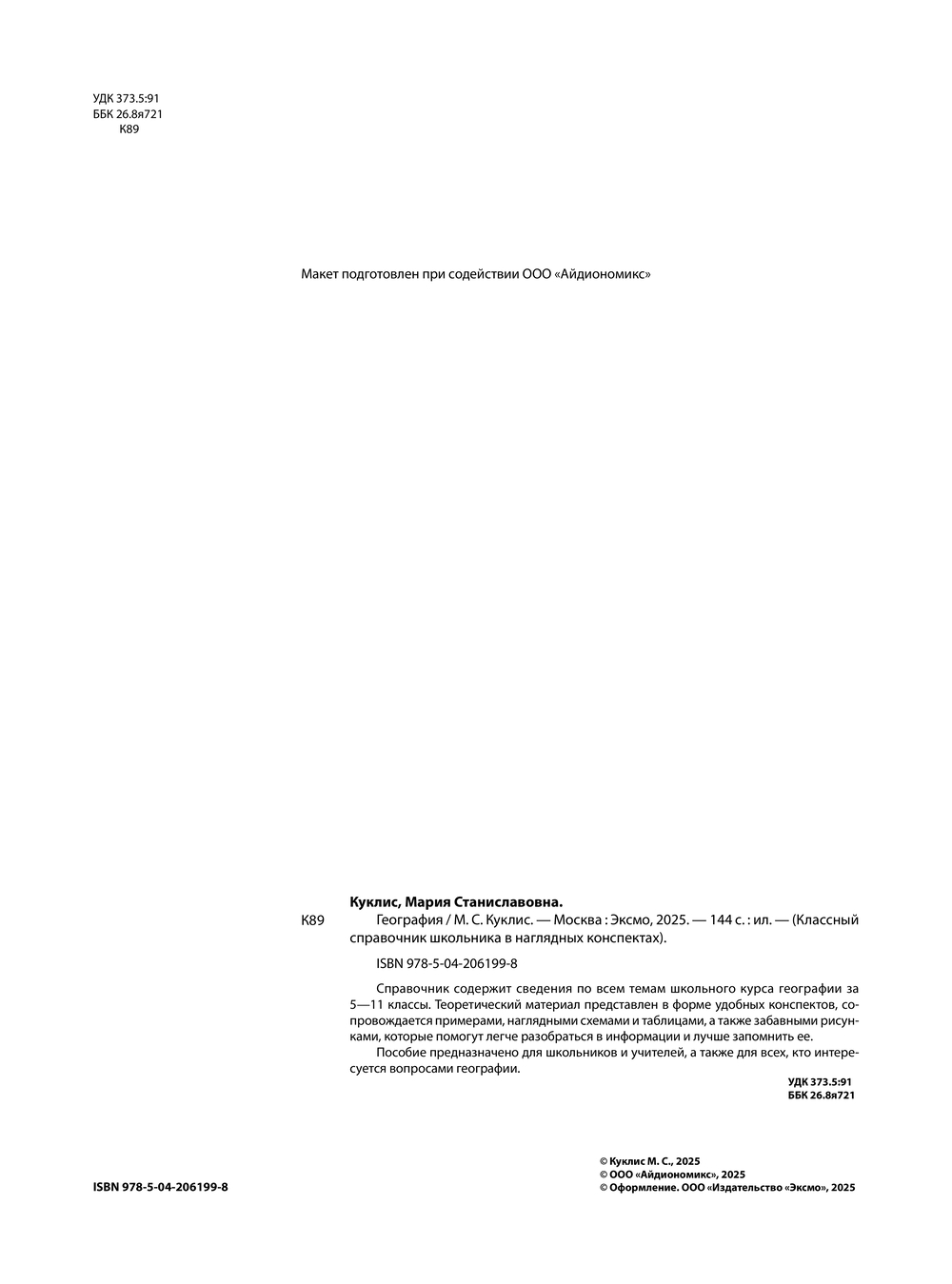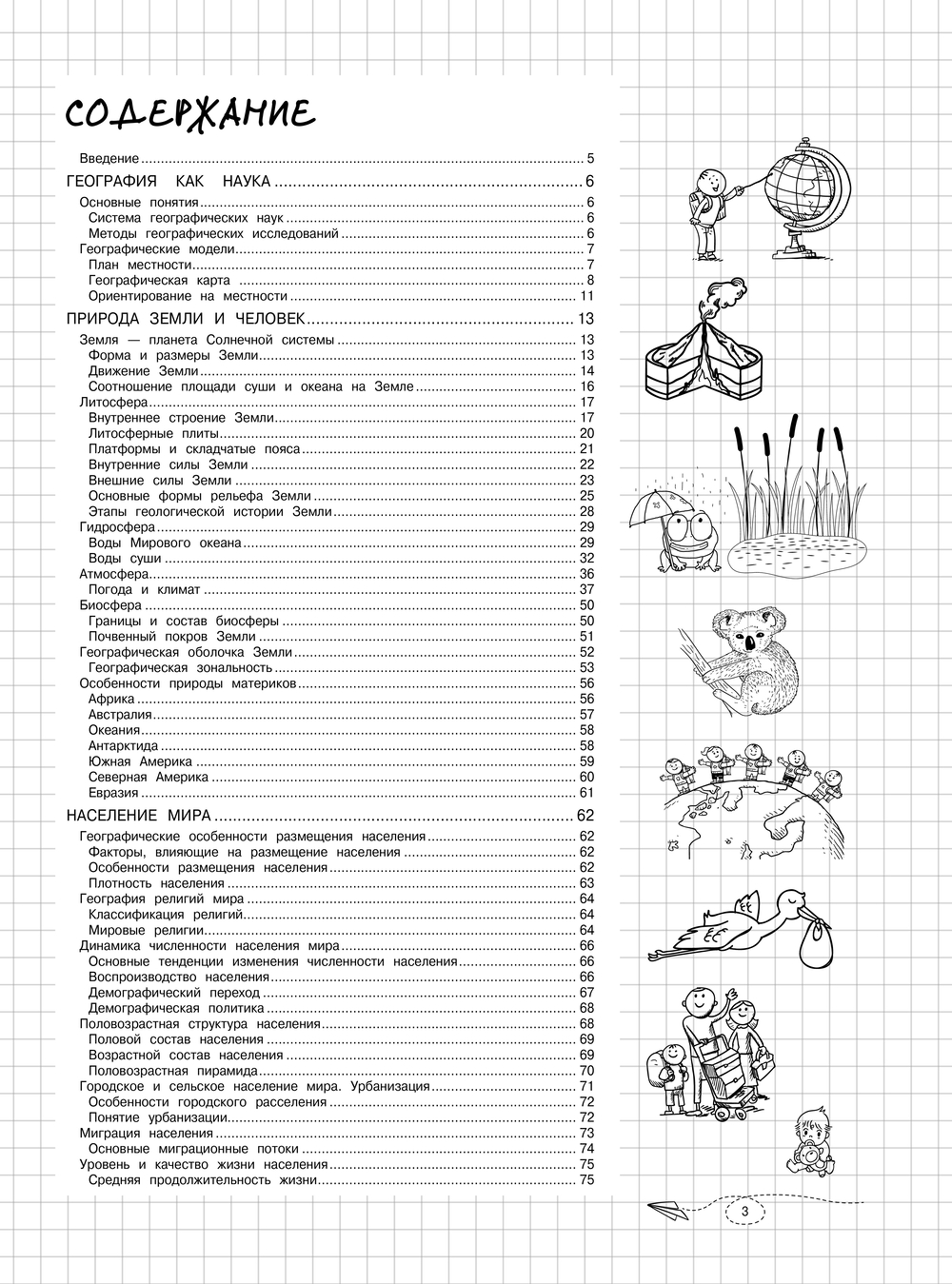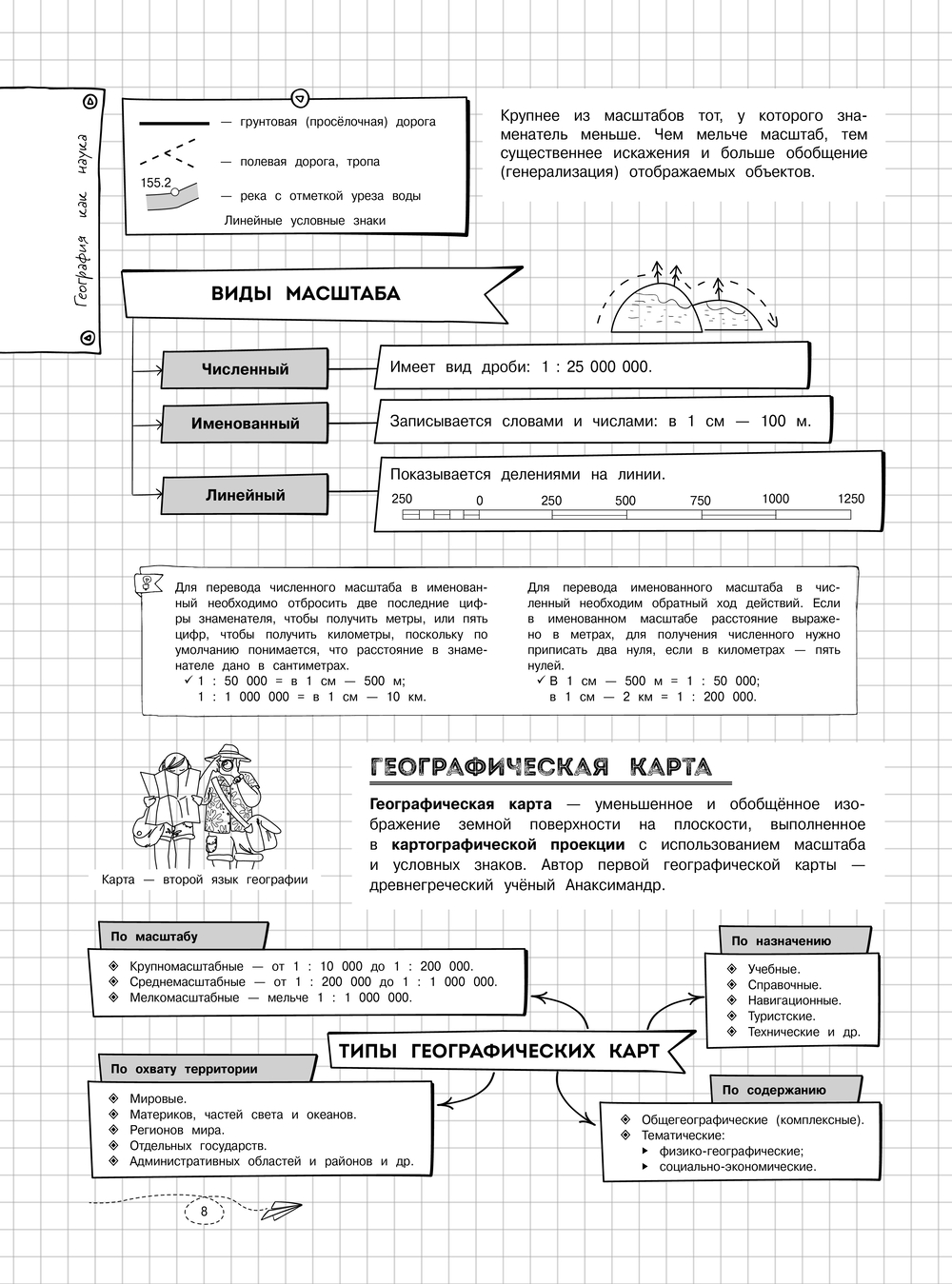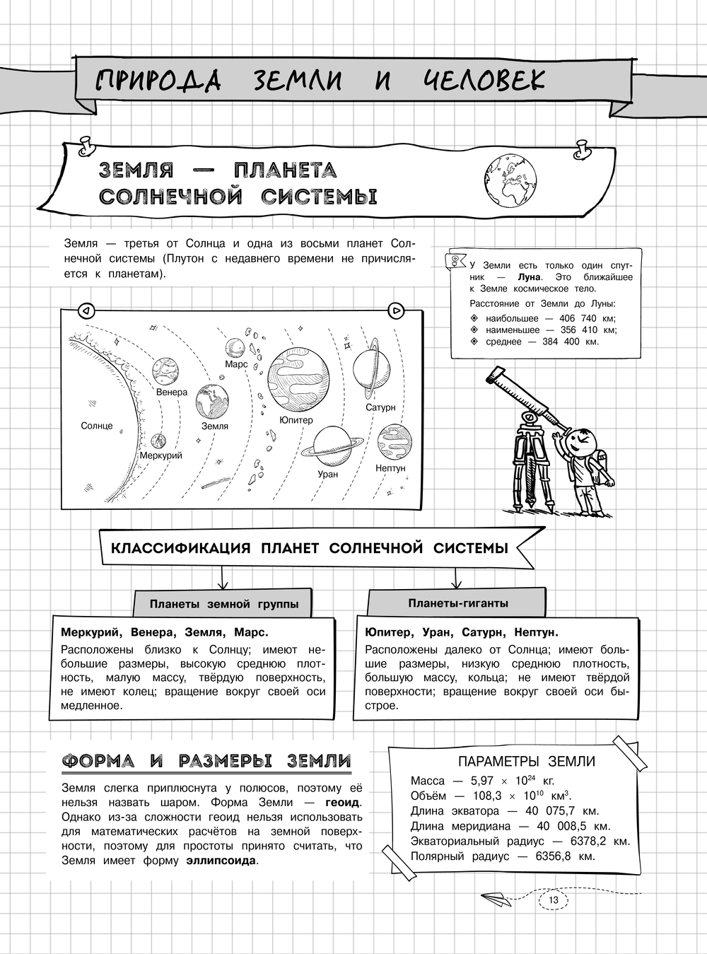 Справочник содержит сведения по всем темам школьного курса географии за 5–11 классы. Теоретический материал представлен в форме удобных конспектов, сопровождается примерами, наглядными схемами и таблицами, а также забавными рисунками, которые помогут легче разобраться в информации и лучше запомнить ее.