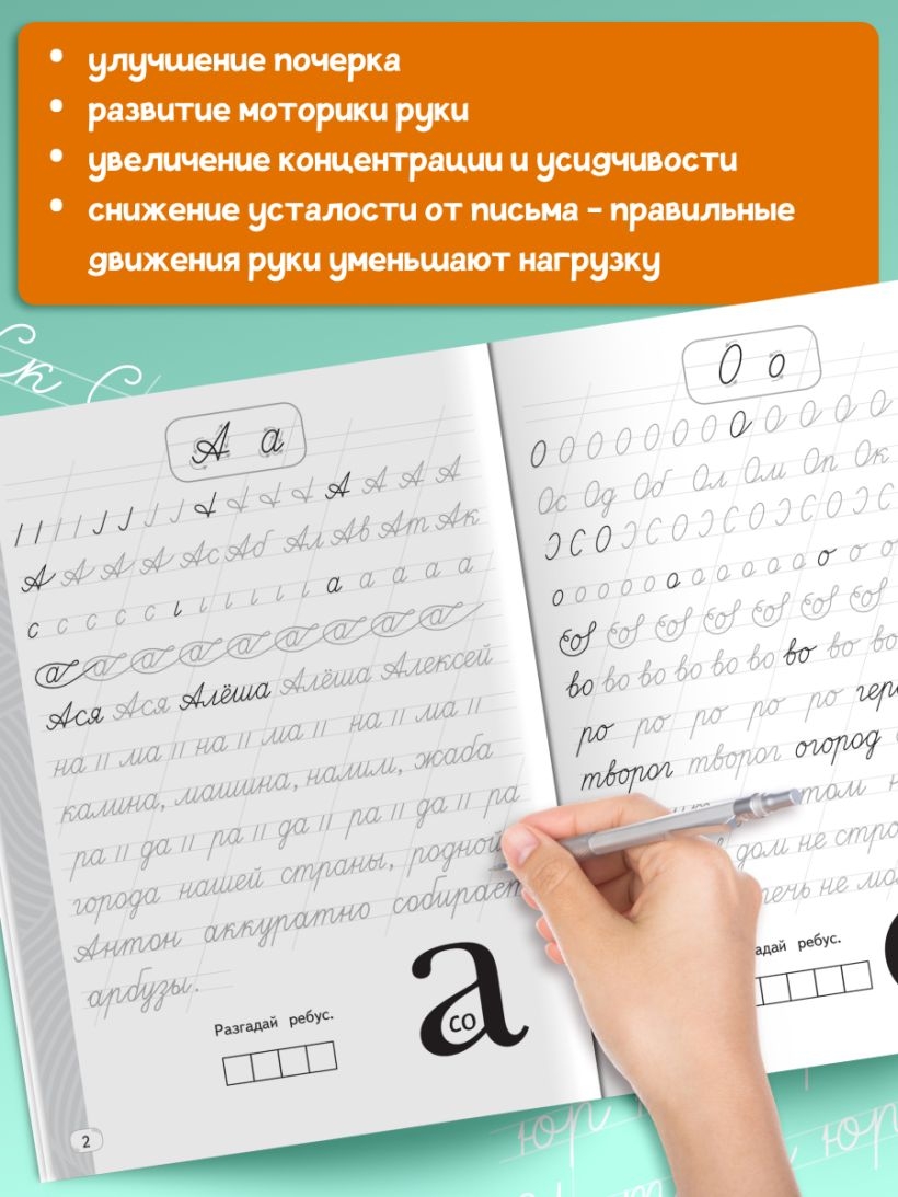 Чистописание – залог успешной учёбы. Красивый и разборчивый почерк снижает вероятность орфографических ошибок. Выполняя задания тренажёра, второклассник одновременно будет развивать мелкую моторику, внимание, память и усидчивость. Помимо упражнений на чистописание, в пособие включены игровые задания, направленные на закрепление материала.