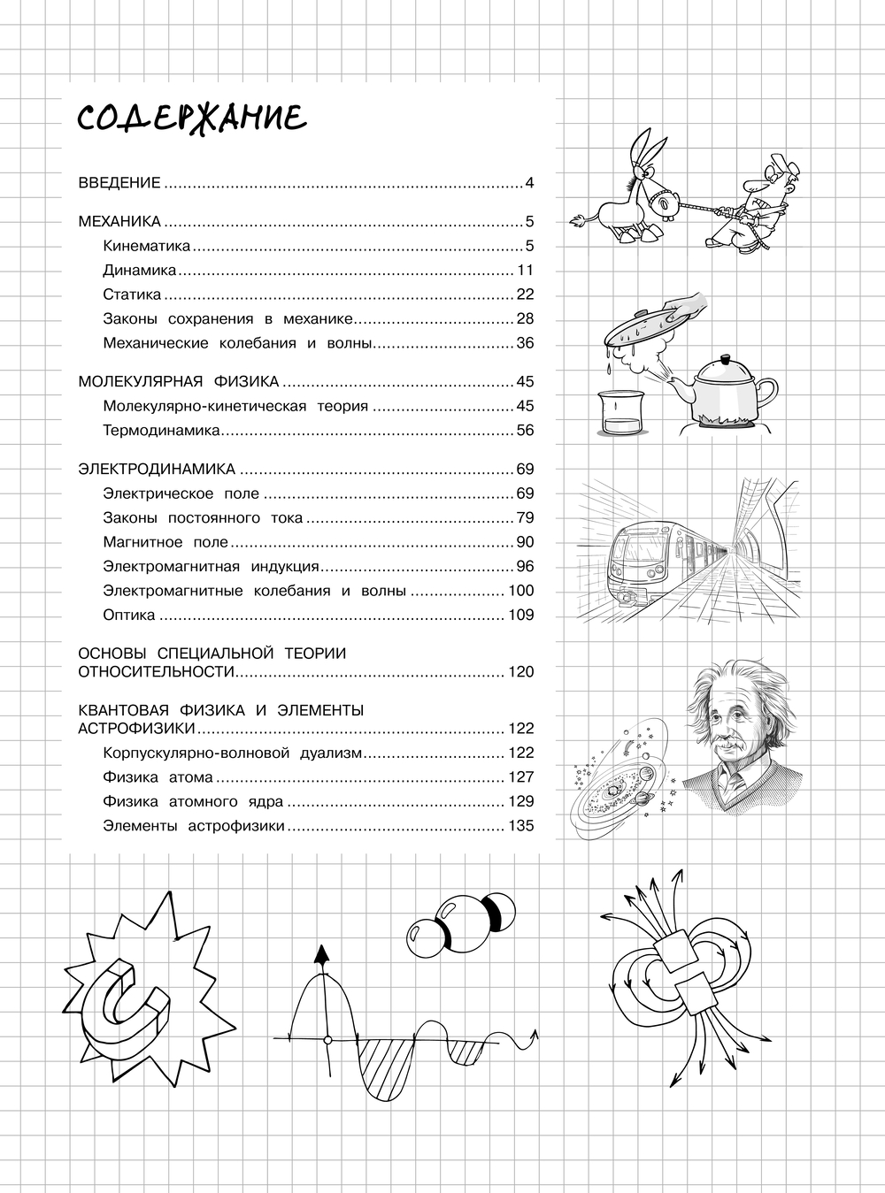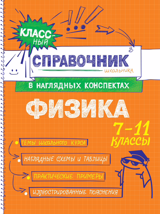 Справочник содержит сведения по всем темам школьного курса физики за 7–11 классы. Теоретический материал представлен в форме удобных конспектов, сопровождается примерами, наглядными схемами и таблицами, а также забавными рисунками, которые помогут легче разобраться в информации и лучше запомнить ее.
