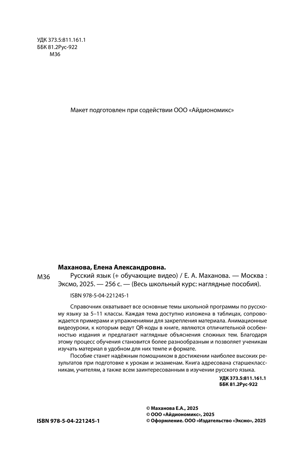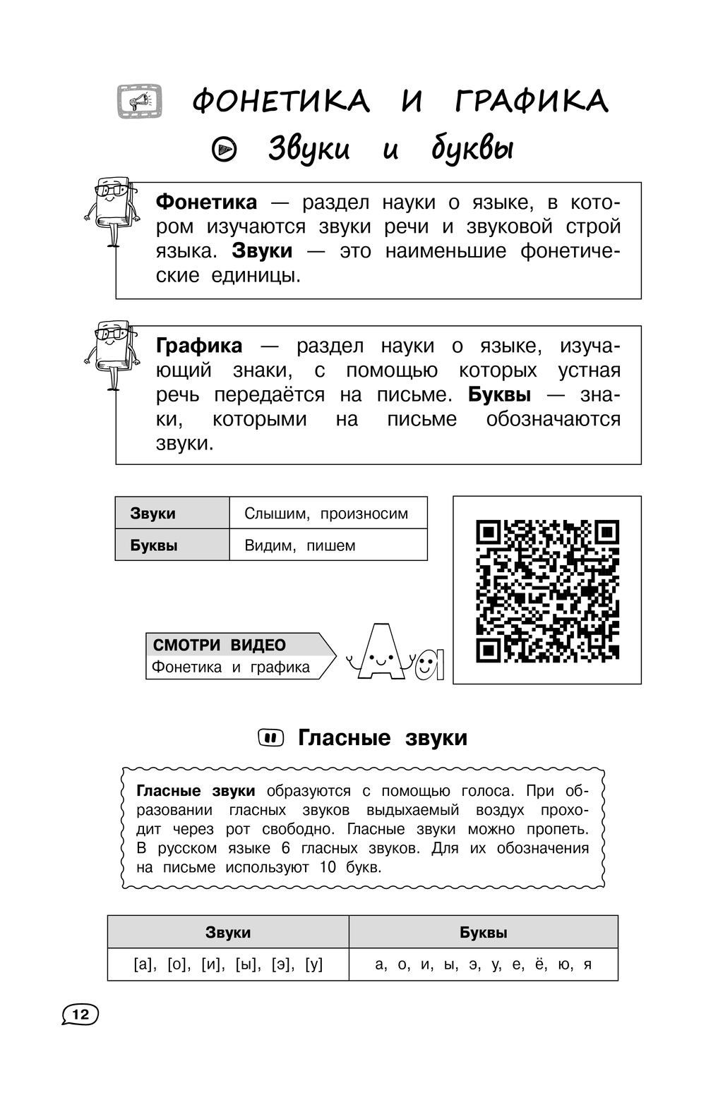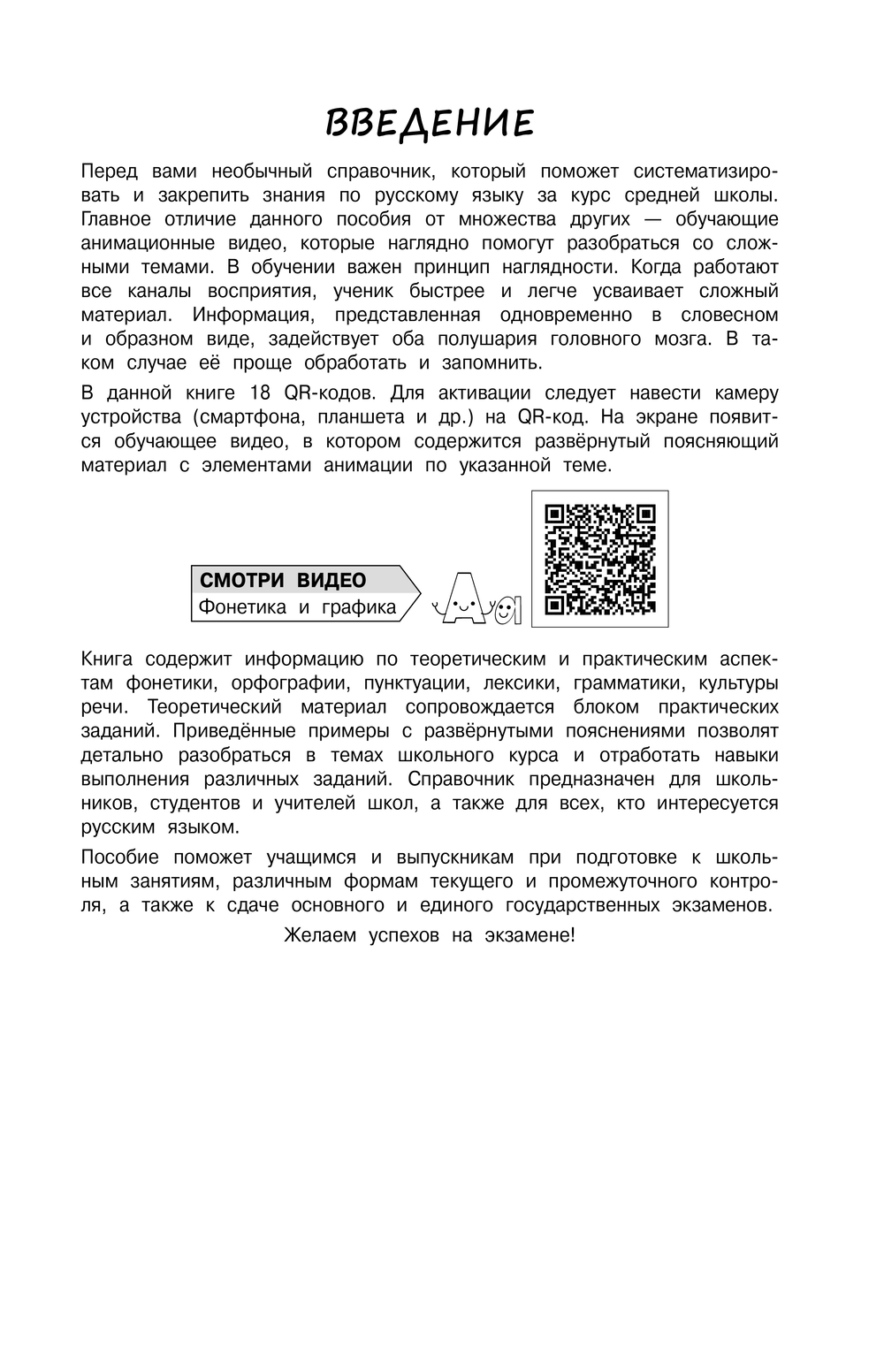 В пособии развёрнутый поясняющий материал по темам, особо актуальным для сдачи экзаменов, ОГЭ и ЕГЭ 2026, представлен в формате коротких видеороликов. Такой справочник для учеников 5, 6, 7, 8, 9, 10, 11 классов сделает процесс обучения живым и запоминающимся! Попробуй новый подход к обучению: смотри и учись в любое время и в любом месте! Также книжка будет полезна для занятий родителей с детьми.