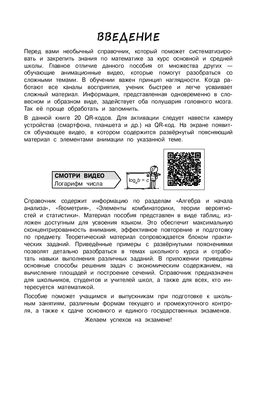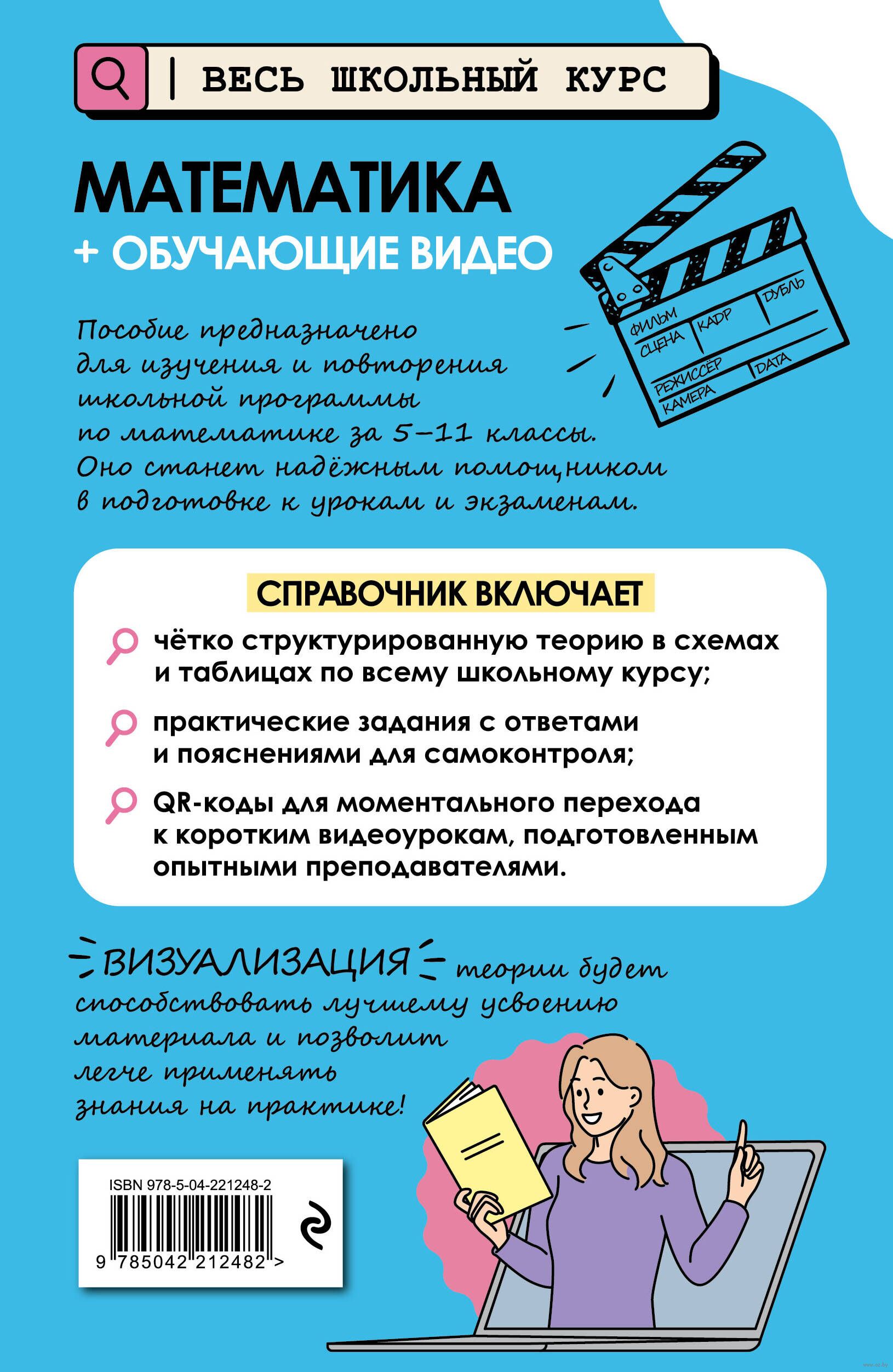 В пособии развёрнутый поясняющий материал по темам, особо актуальным для сдачи экзаменов, ОГЭ и ЕГЭ 2026, представлен в формате коротких видеороликов. Такой справочник для учеников 5, 6, 7, 8, 9, 10, 11 классов сделает процесс обучения живым и запоминающимся! Попробуй новый подход к обучению: смотри и учись в любое время и в любом месте! Также книга будет полезна для занятий родителей с детьми.